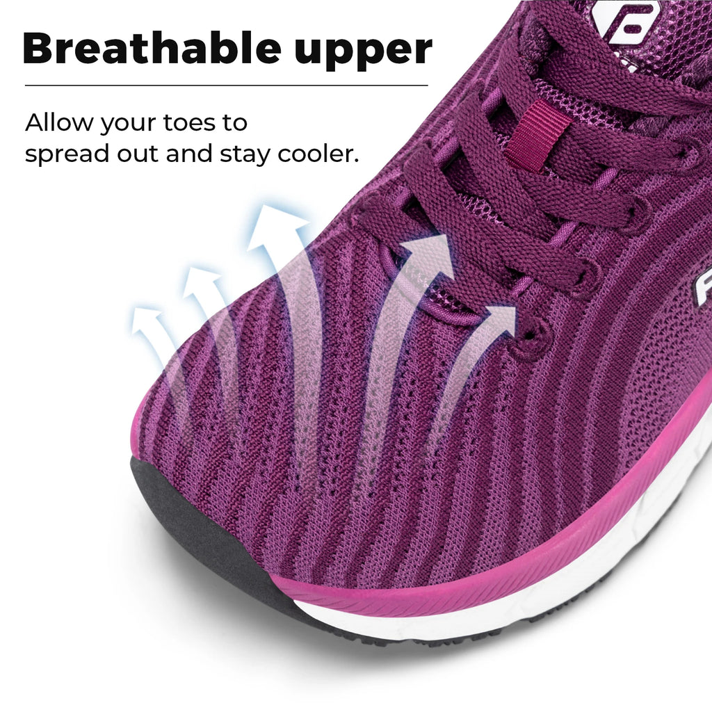 These lightweight running shoes offer strong support, ensuring your feet remain fatigue-free throughout the day. With a lace-up closure, they provide a snug fit tailored for women. The shoes fit larger than usual, so be sure to check the sizing information for the perfect fit.