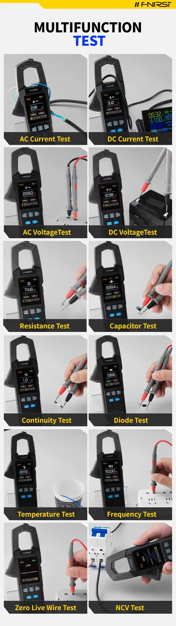 - Advanced Functions: Diode measurement, NCV, zero fire wire check, on-off test