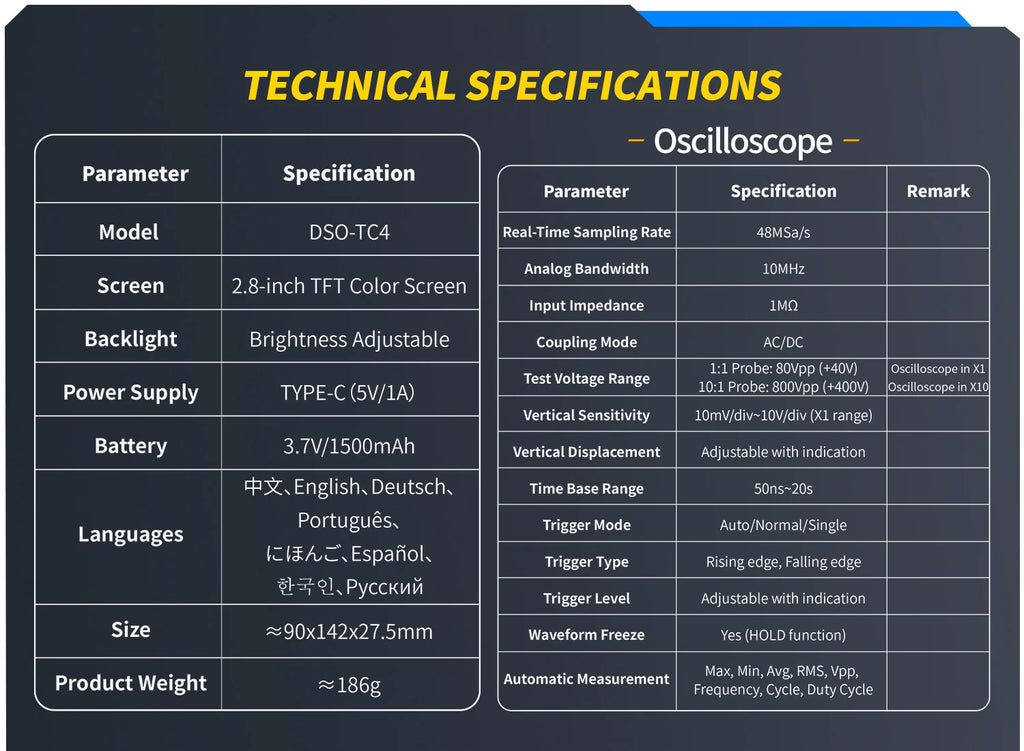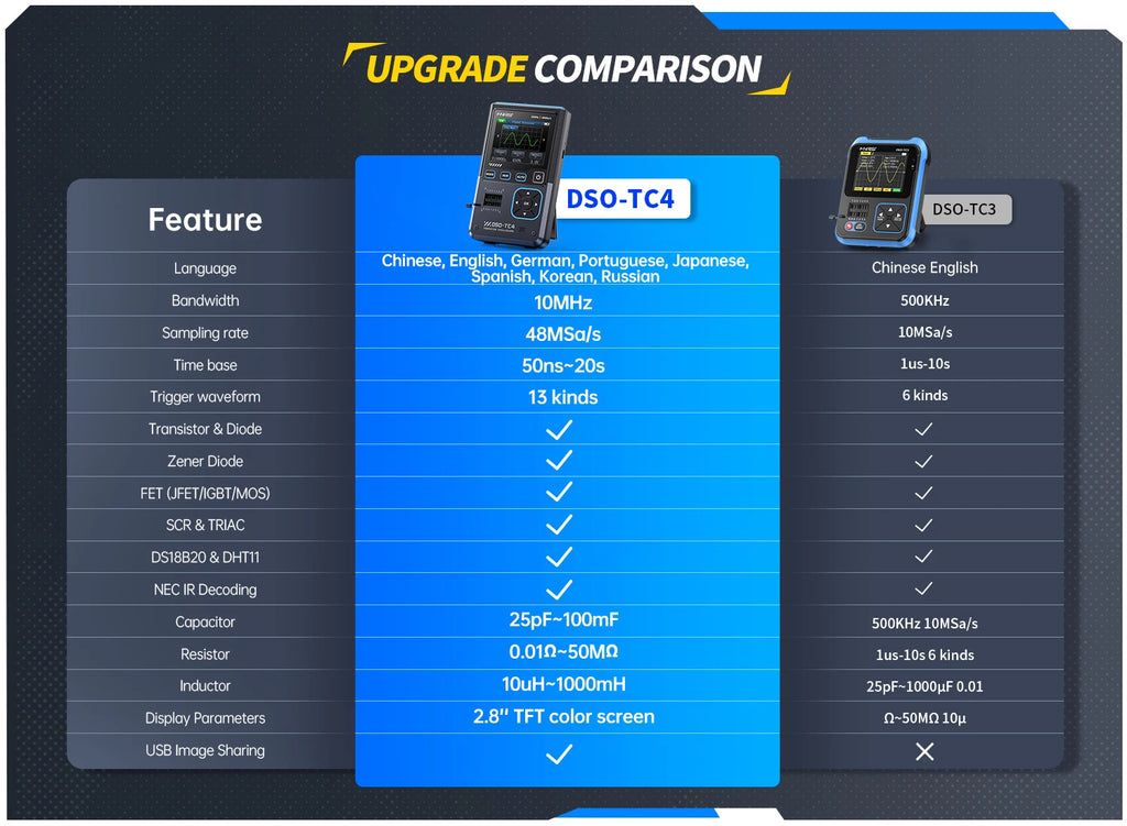 - TC4: Features 10MHz bandwidth with a real-time sampling rate of 48MSa/s.