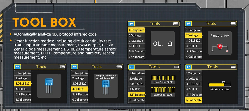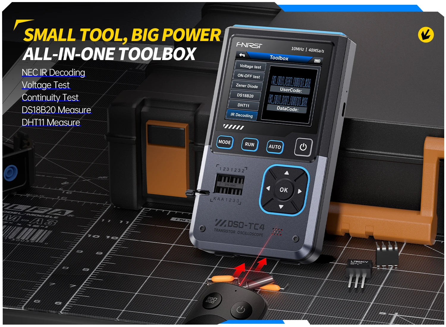 - Offers support for NEC infrared decoding, ideal for remote control repair.