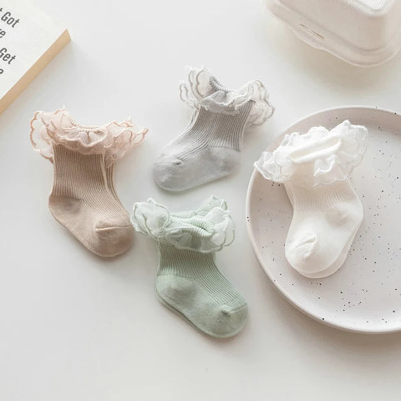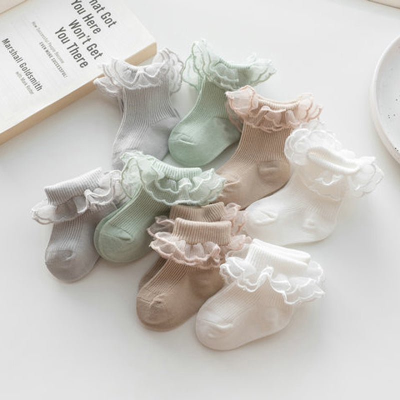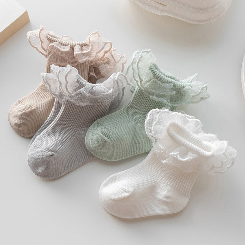 Autumn Winter Baby Lace Ruffle Socks 4 Colors, Anti-Skid Toddler Princess Socks