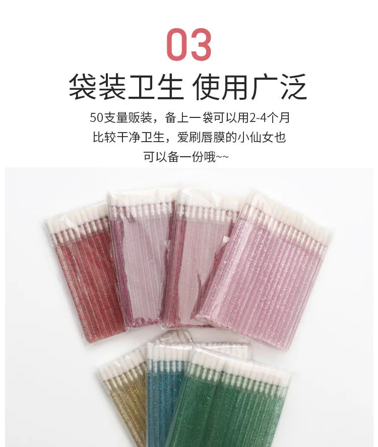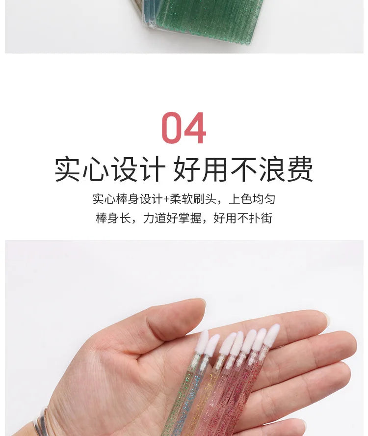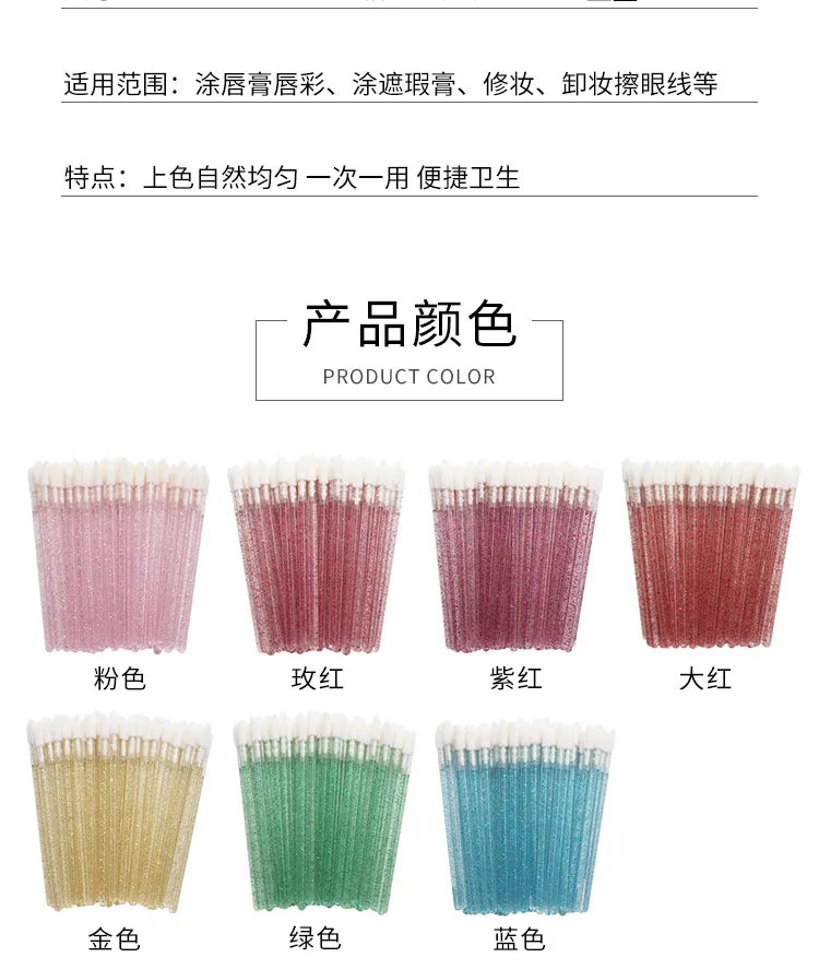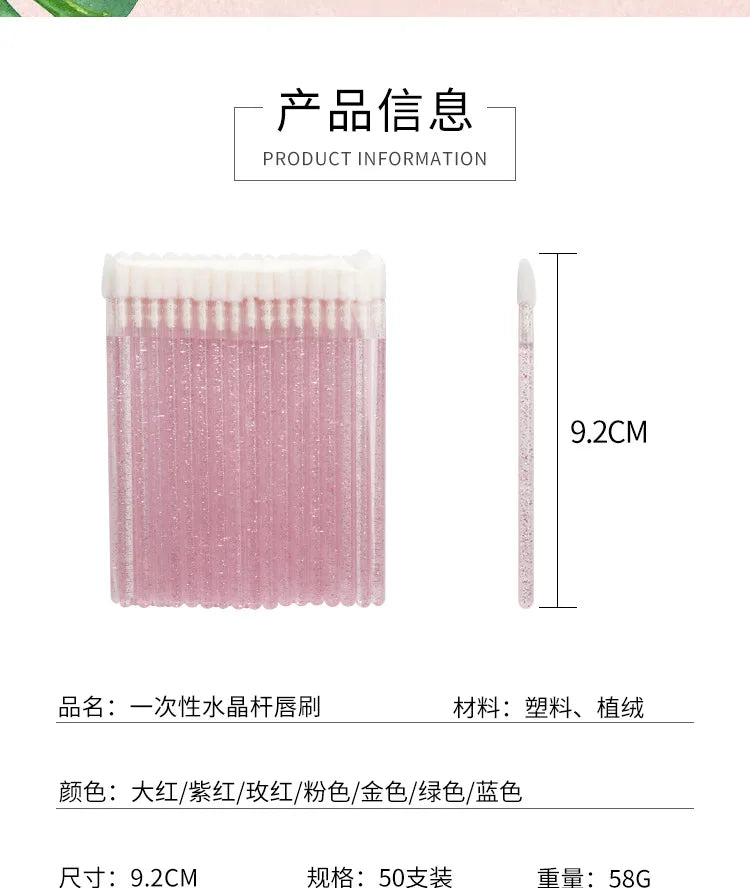 Elevate your beauty routine with this set of 50 disposable crystal brushes, designed for flawless eyelash extensions and impeccable lip makeup. Each brush features a soft, flexible head for smooth and precise application, perfect for combing, curling, and use with primers and removers. Available in vibrant colors such as Red, Pink, Rose Red, Gold, Blue, Green, and Fuchsia, these brushes bring a stylish flair to your beauty toolkit. Prioritizing hygiene and efficiency, they are an essential addition to any cosmetic collection.