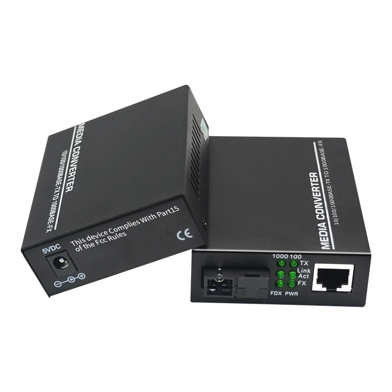 Gigabit Ethernet Fiber Media Converter 1000/100Mbps RJ45 SC Port Single Mode Fiber External Power