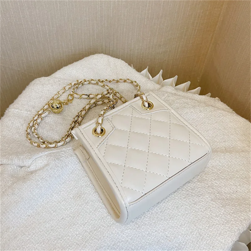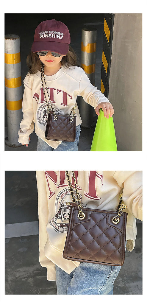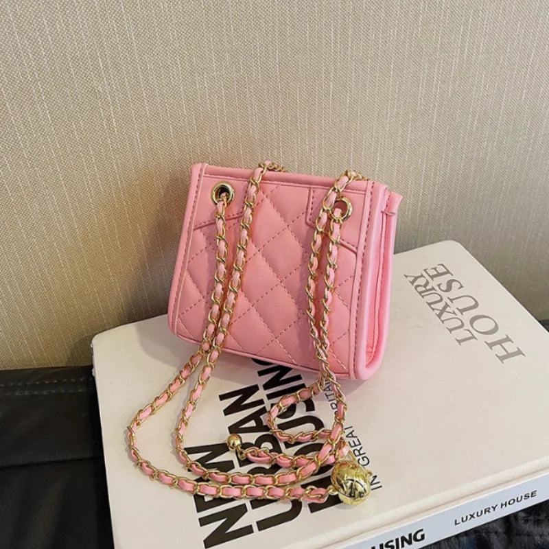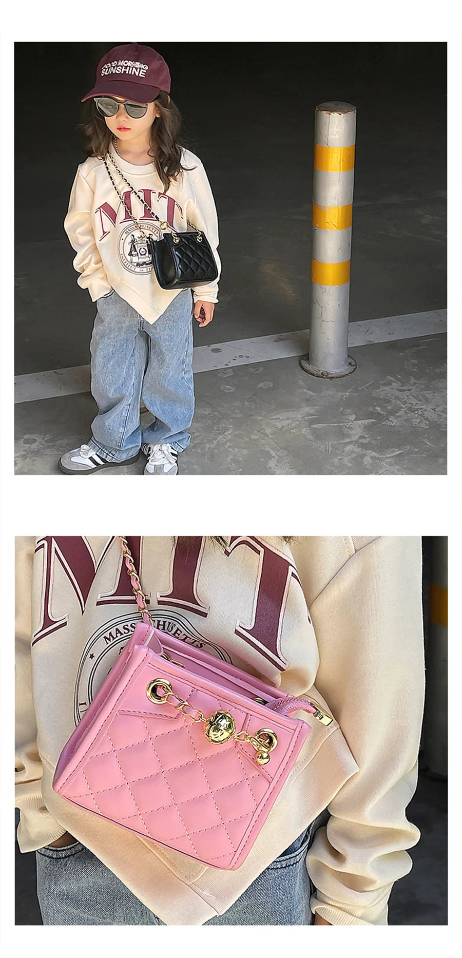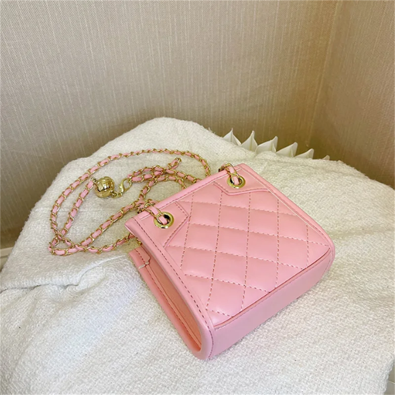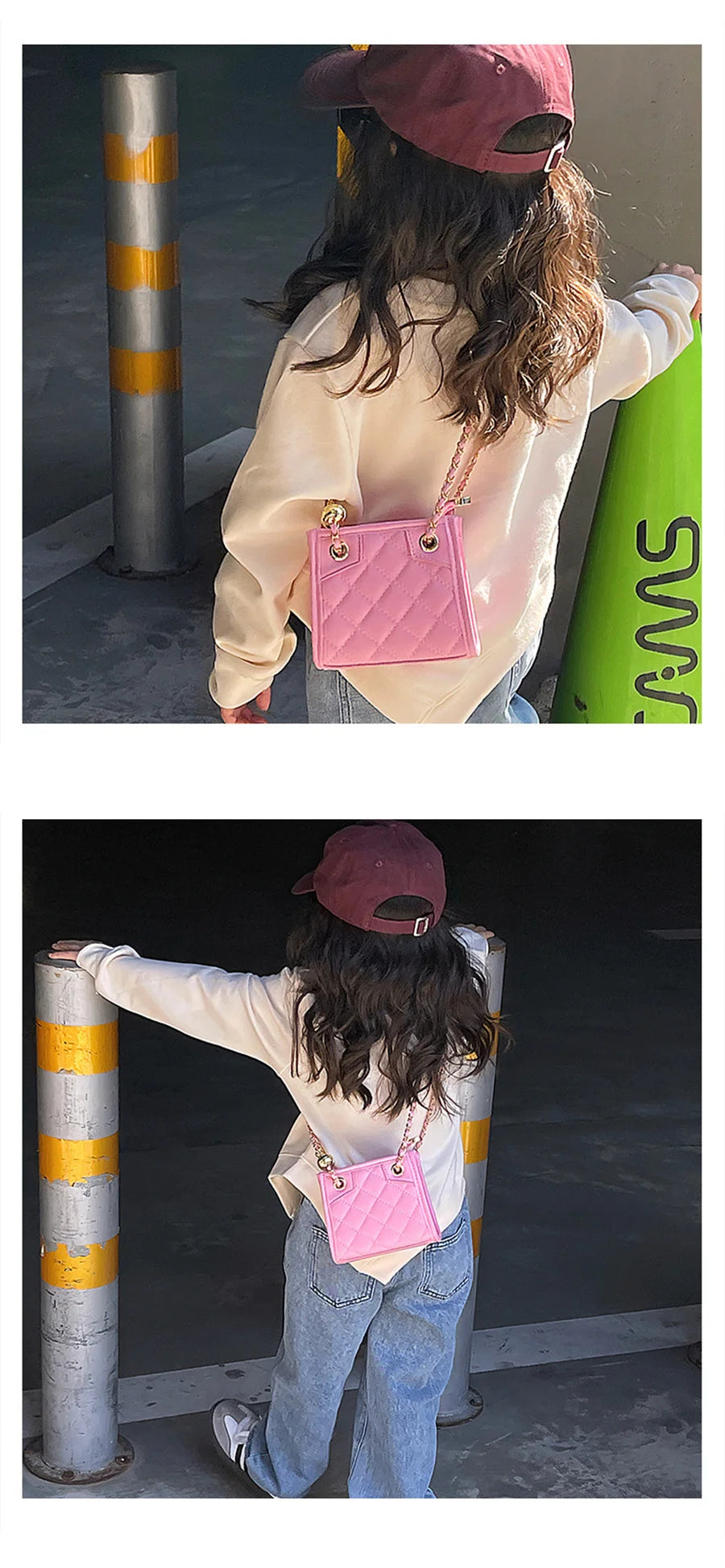 Girl's Diamond Checkered Crossbody Bag Small Square Mini Chain Purse