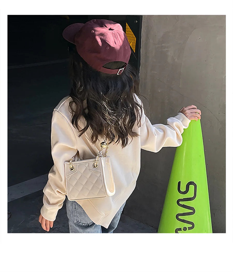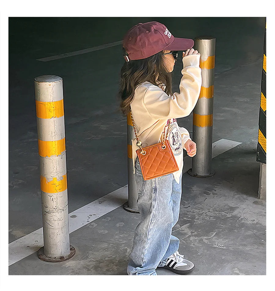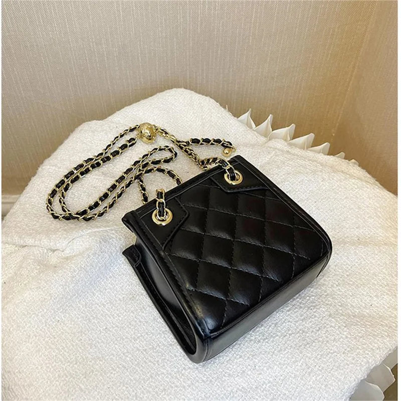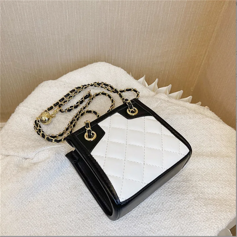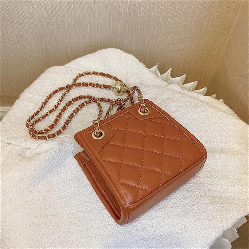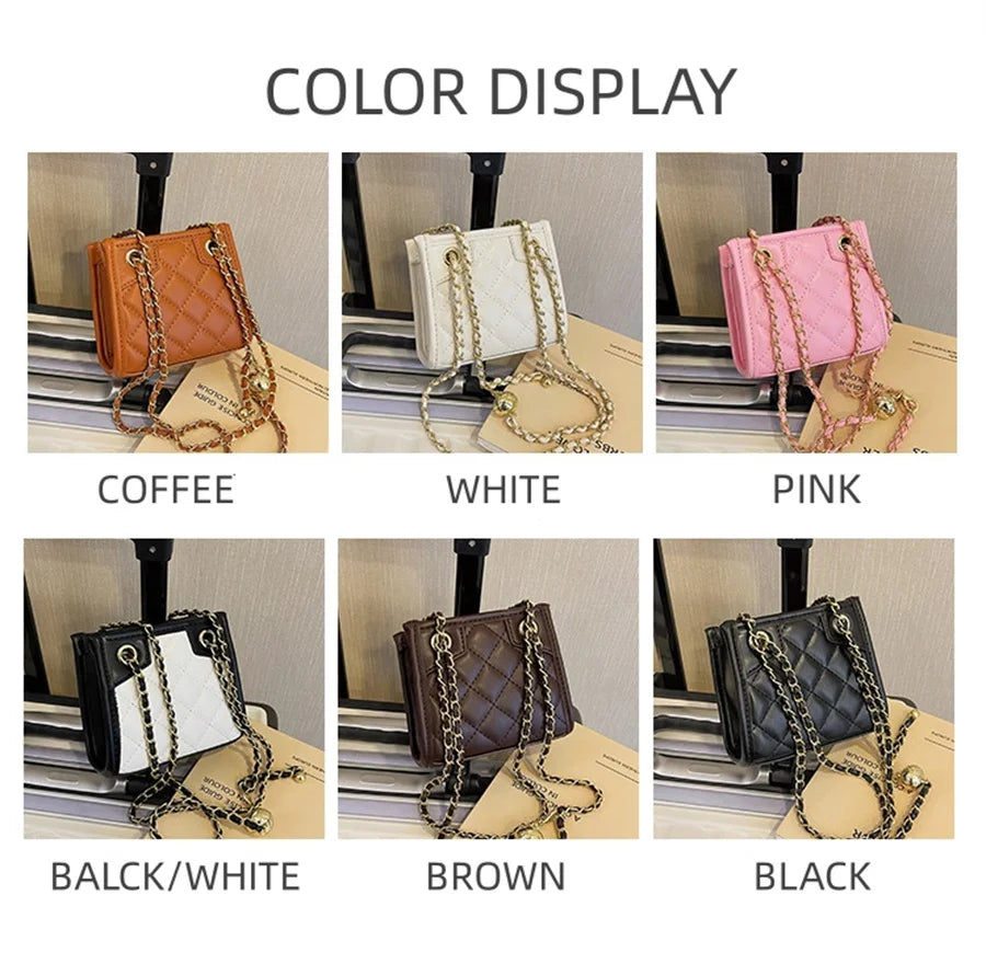 Girl's Diamond Checkered Crossbody Bag Small Square Mini Chain Purse
