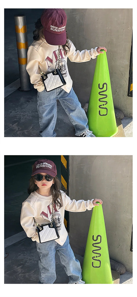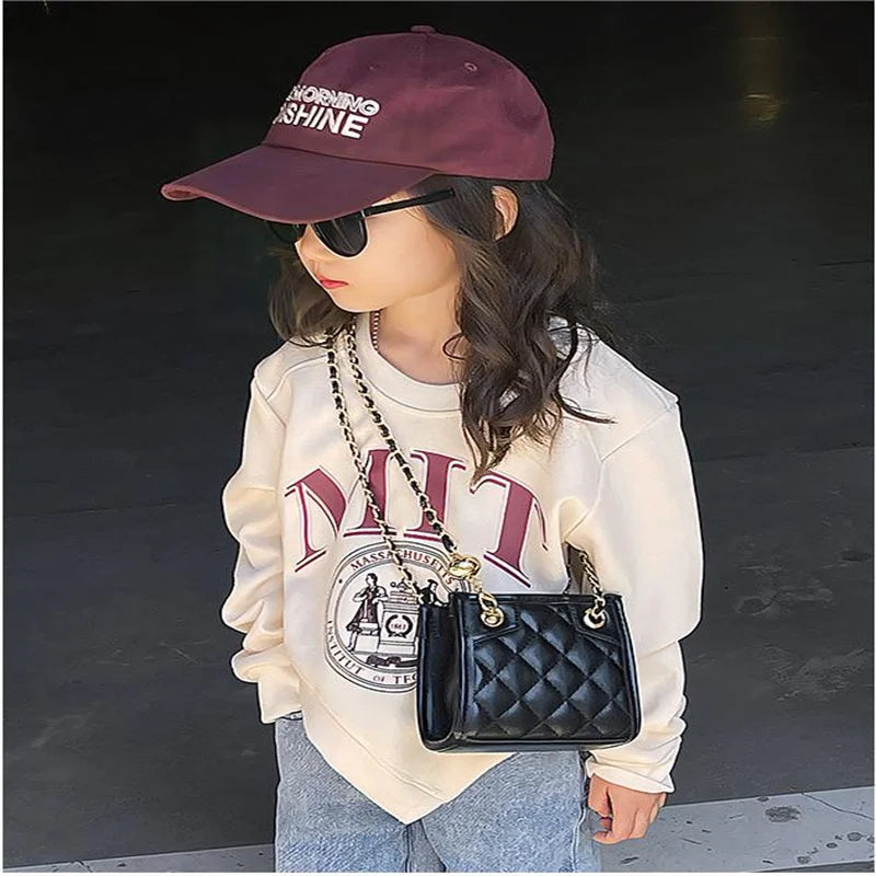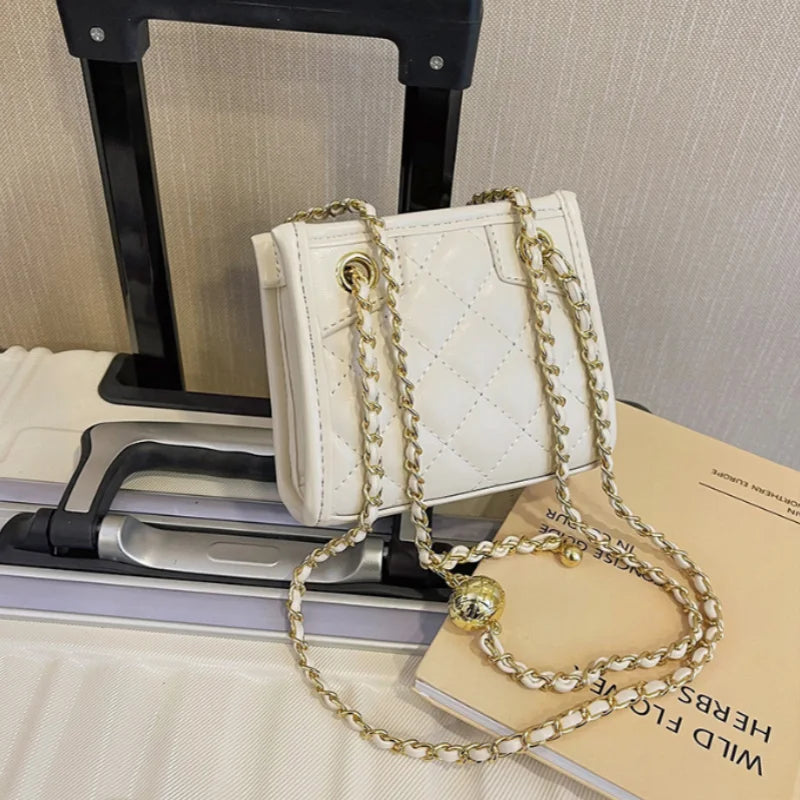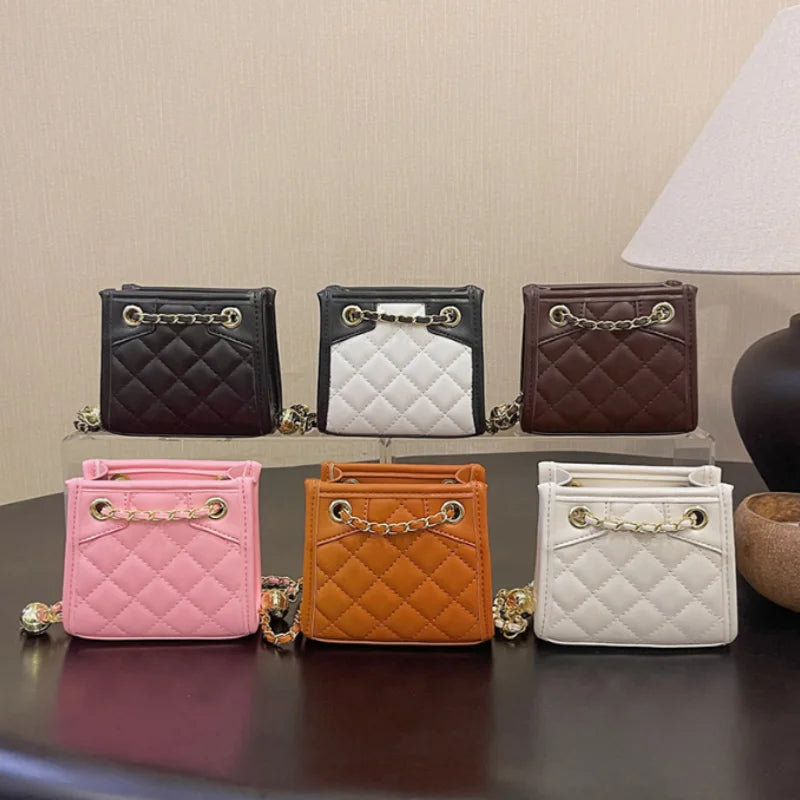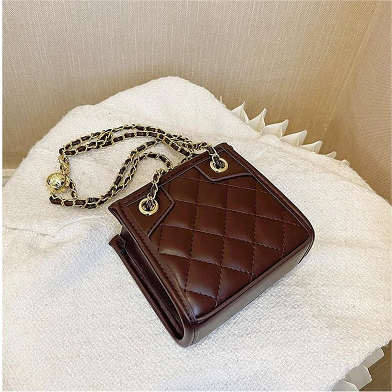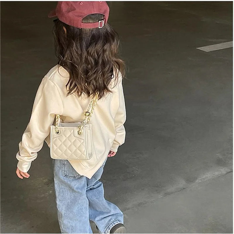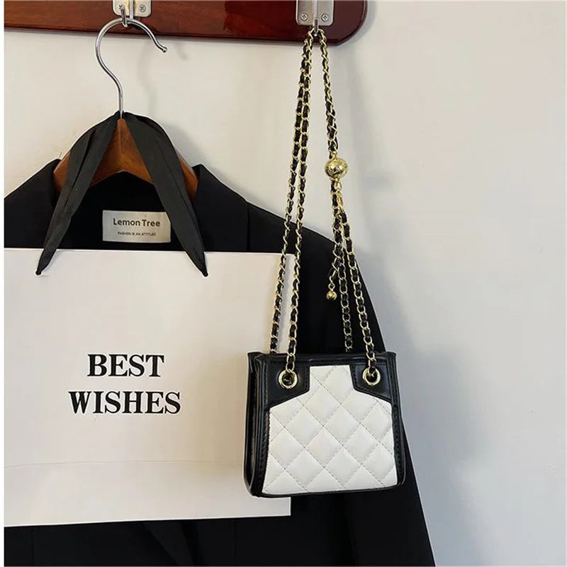 Girl's Diamond Checkered Crossbody Bag Small Square Mini Chain Purse