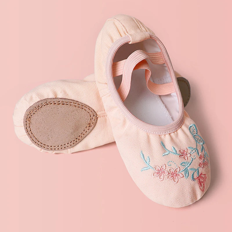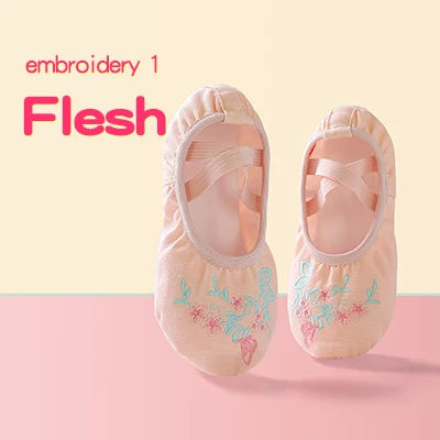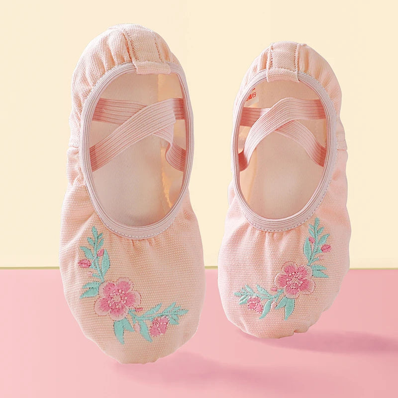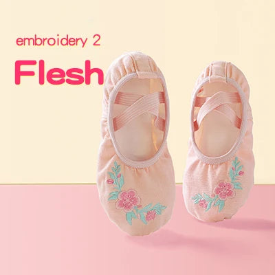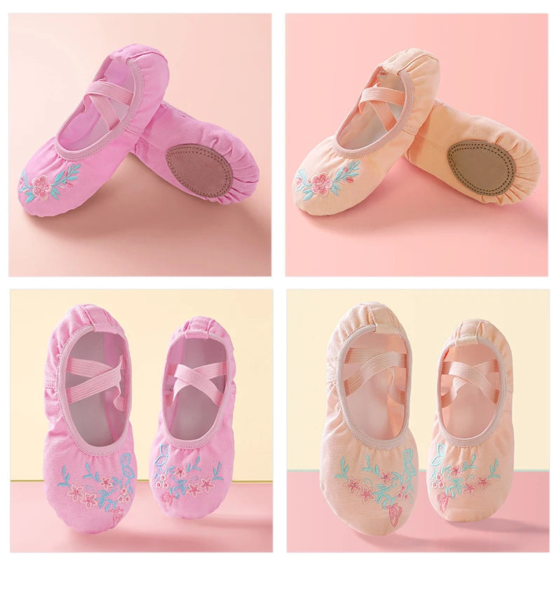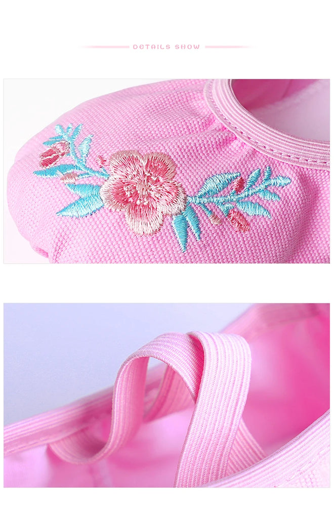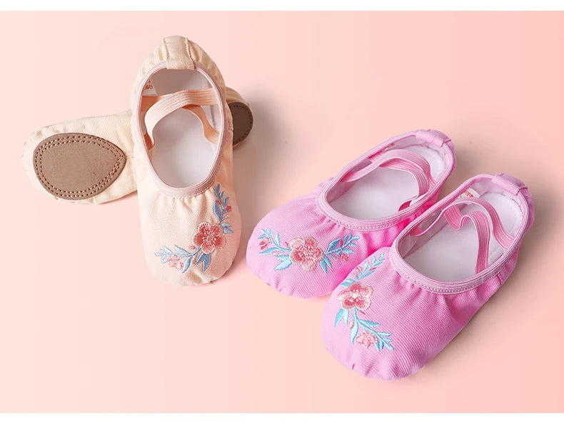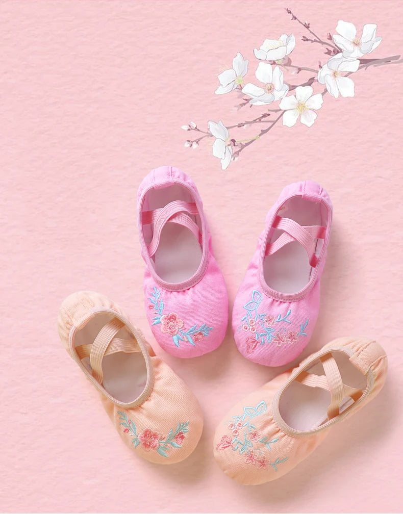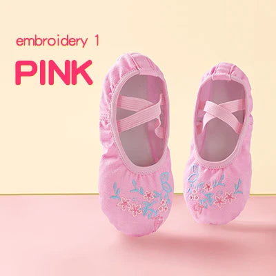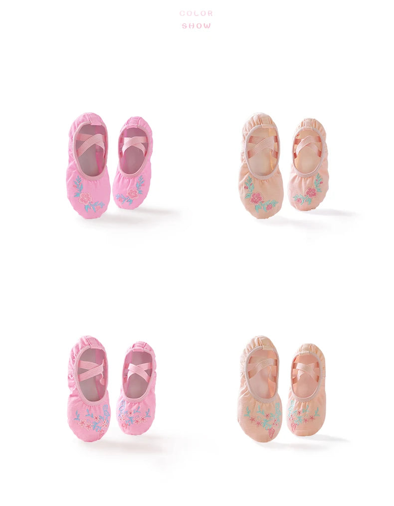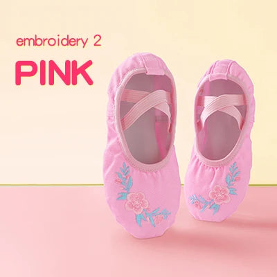 Girls Pink Ballet Shoes Embroidered Kids Dance Slippers Split Sole Gymnastics Dancing Shoes