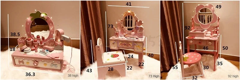 Girl's Princess Dressing Table Set - Simulated 61-Piece Vanity for Birthday Gift