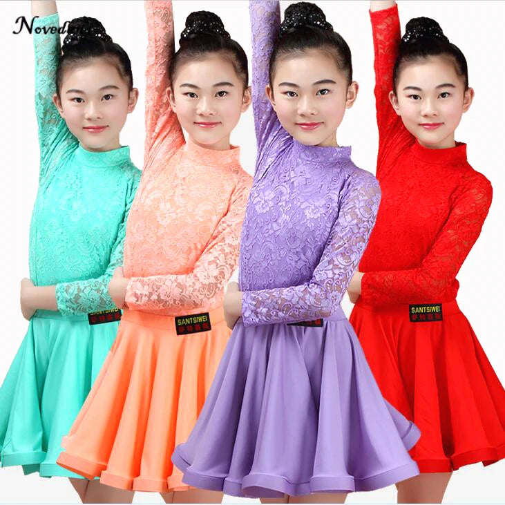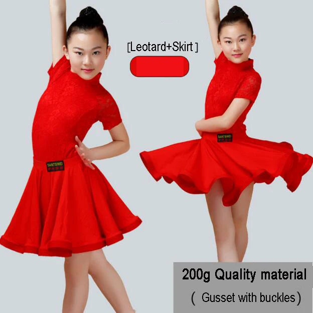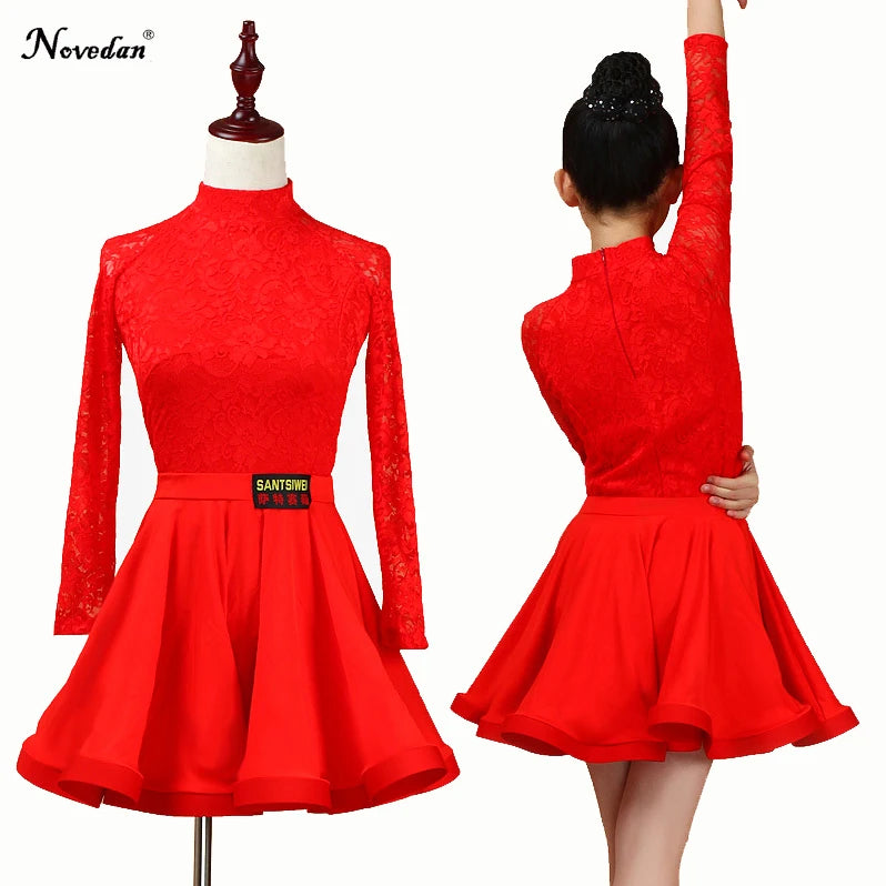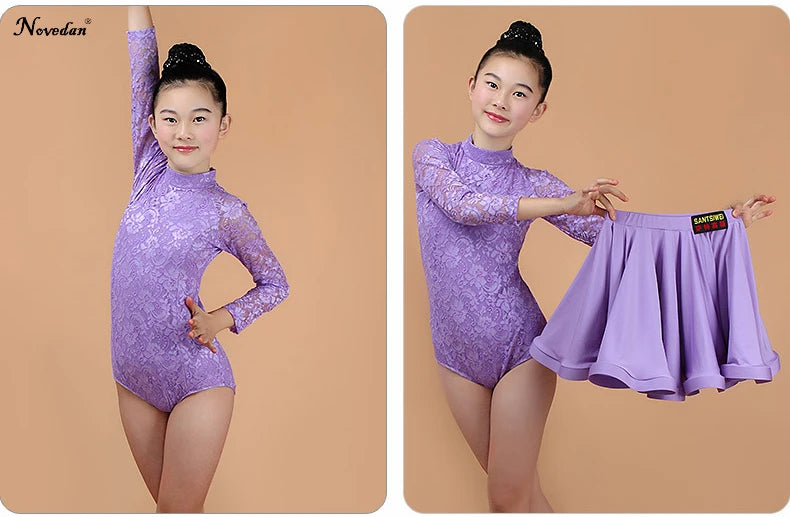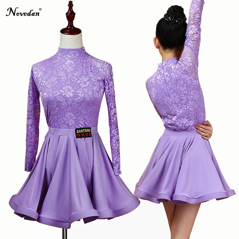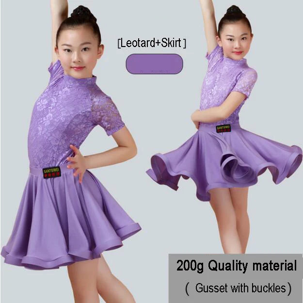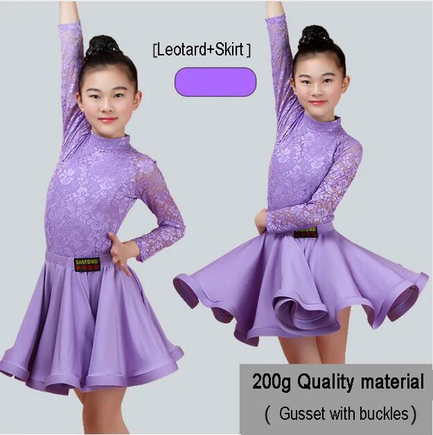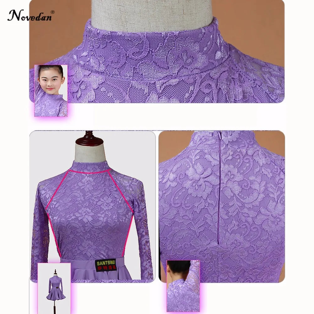 Elevate your child's dance performance with this elegant Latin Ballroom Dance Dress. Crafted for children participating in Latin dance styles such as Salsa, Rumba, Cha Cha, Samba, and Tango, this dress combines style and functionality. Made from high-quality polyester with a knit weave, it features a split lace design ideal for competitions and performances. Available in vibrant colors including Red, Light Blue, Pink, Lavender, and Black, this dress is perfect for any young dancer.