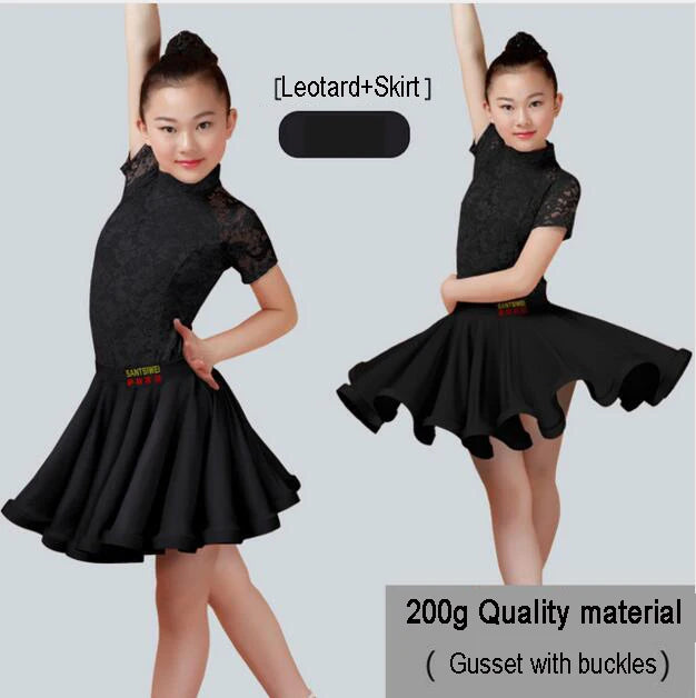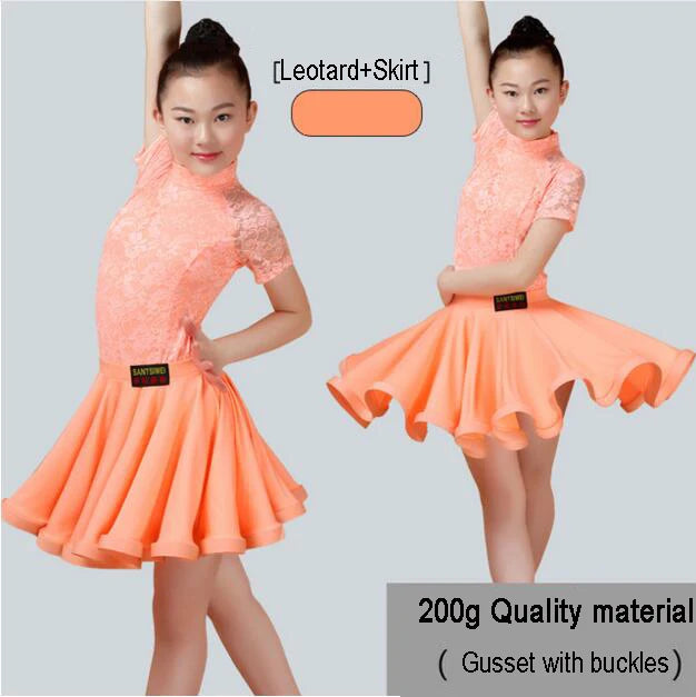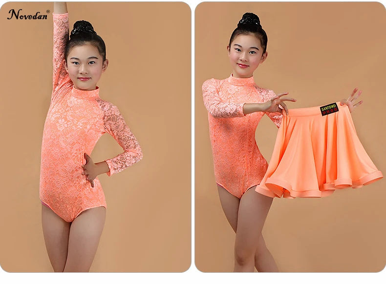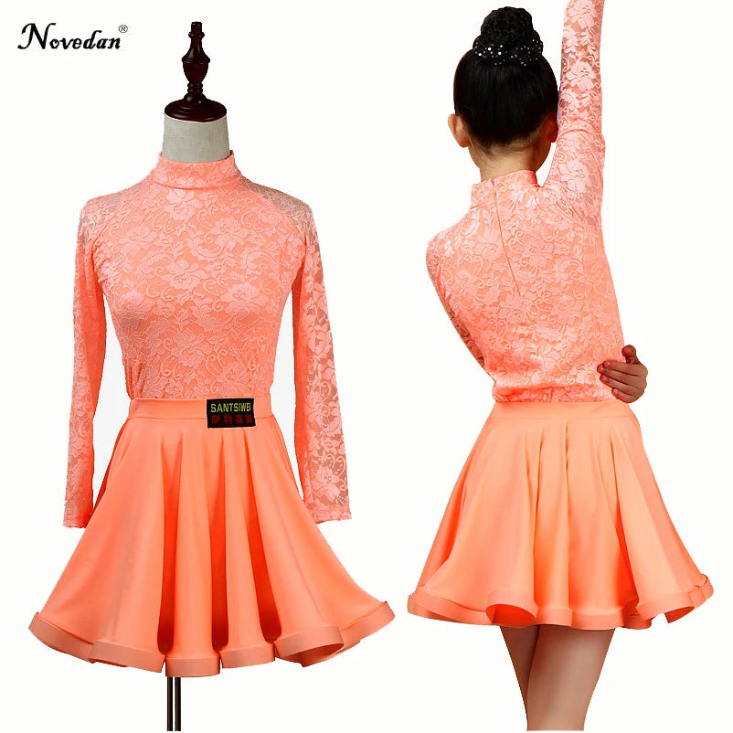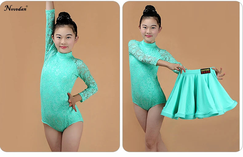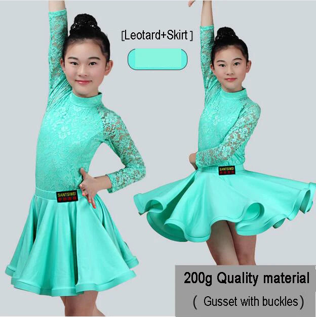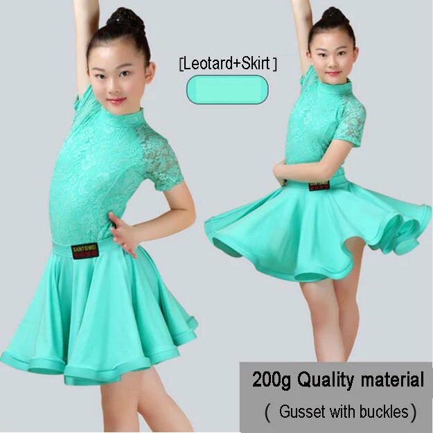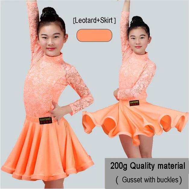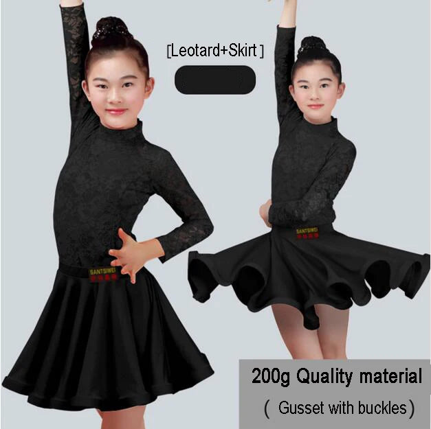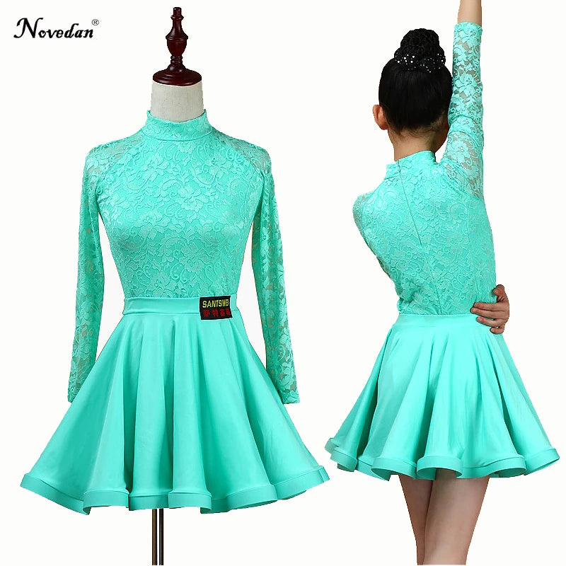 Girls Latin Dance Skirt Dress Split Lace Performance Competition Outfit