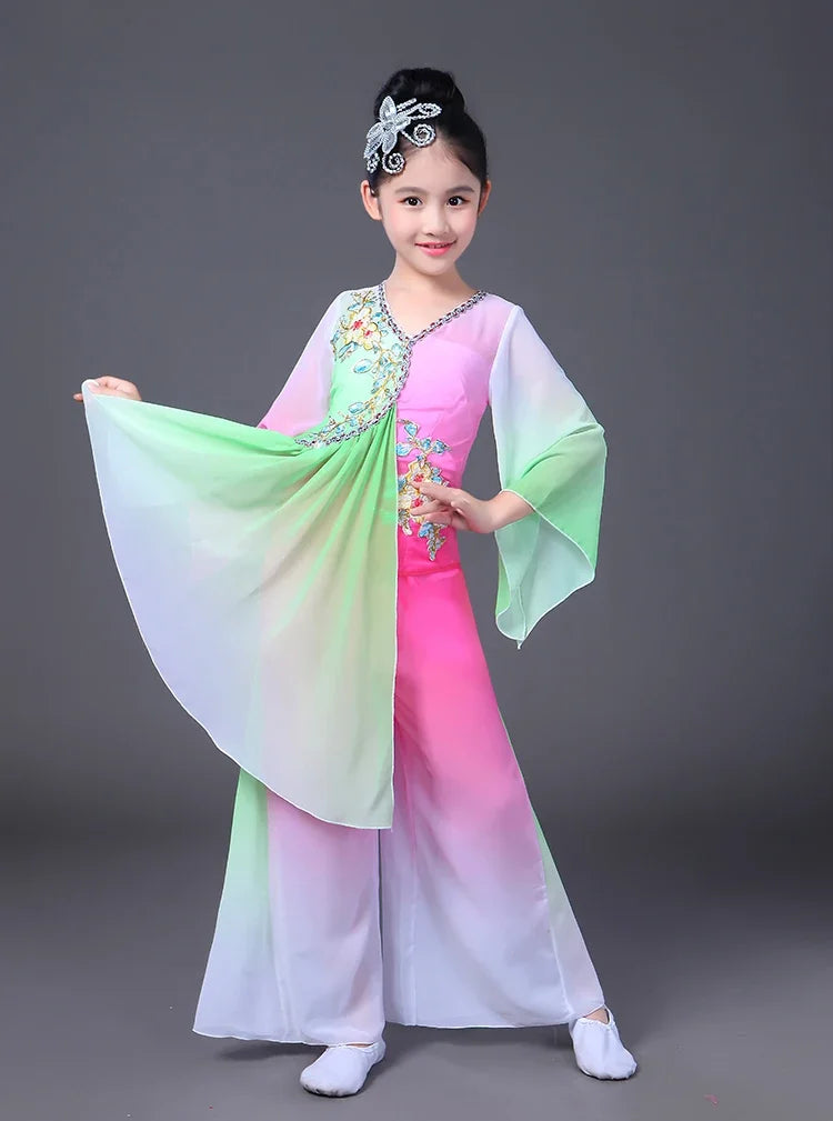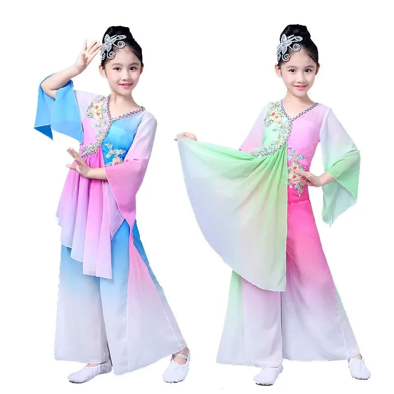 Girls Hanfu Chinese Dance Costume Sleeve Dress Yangko Classical Modern Kids Outfit