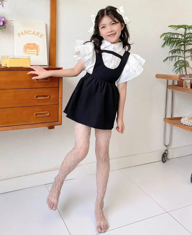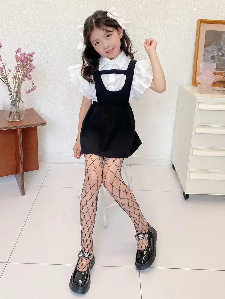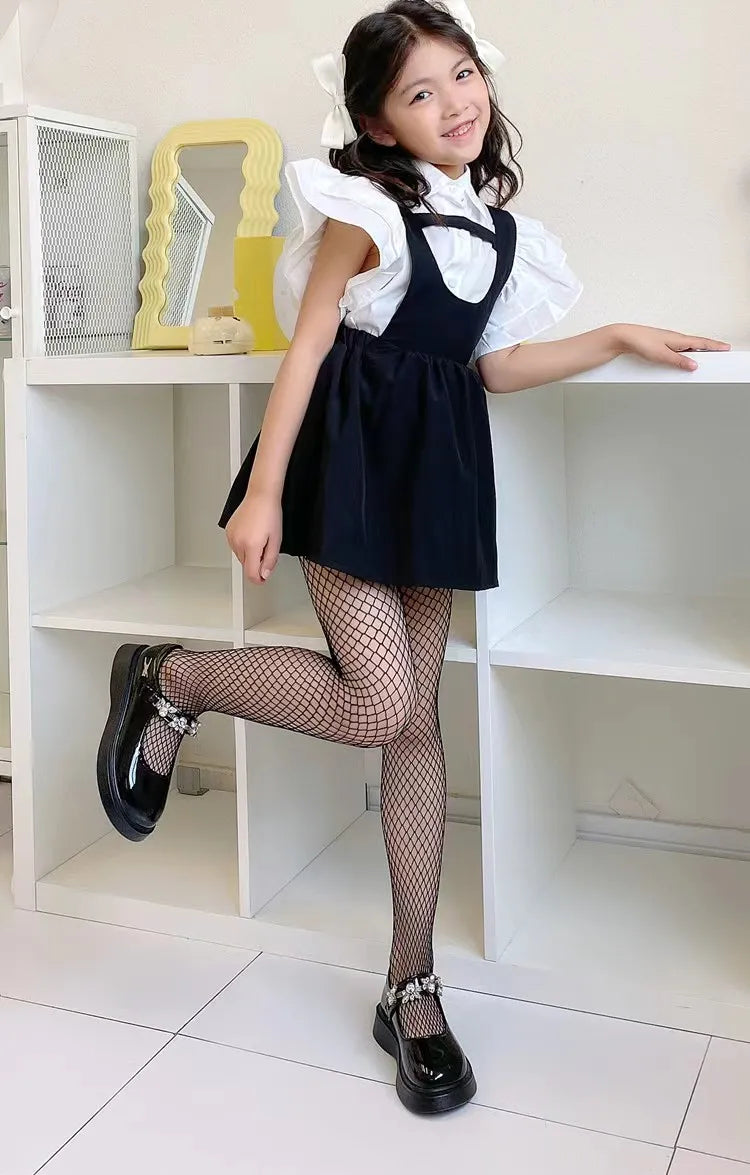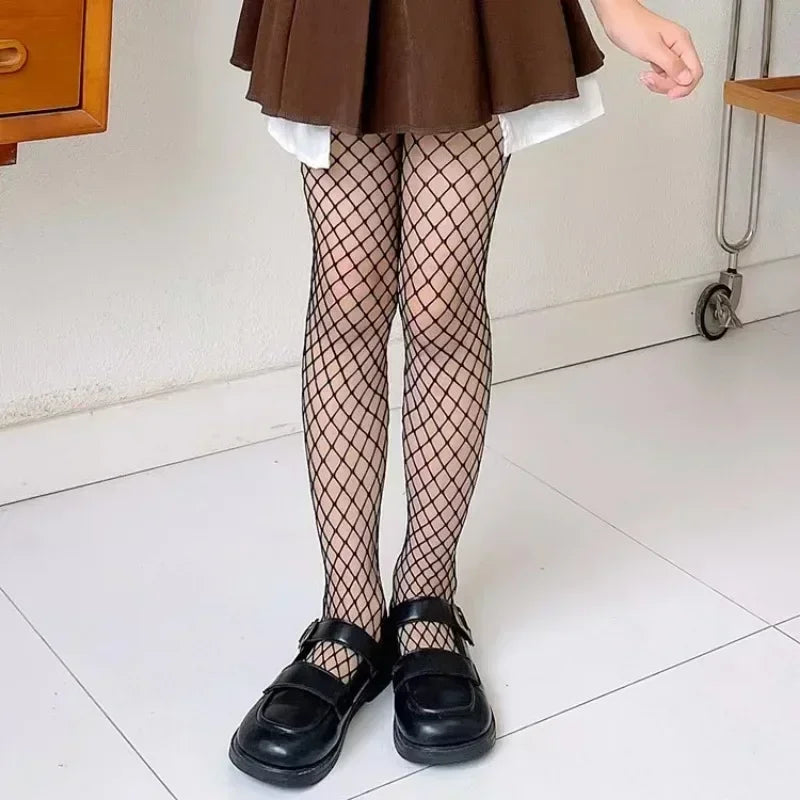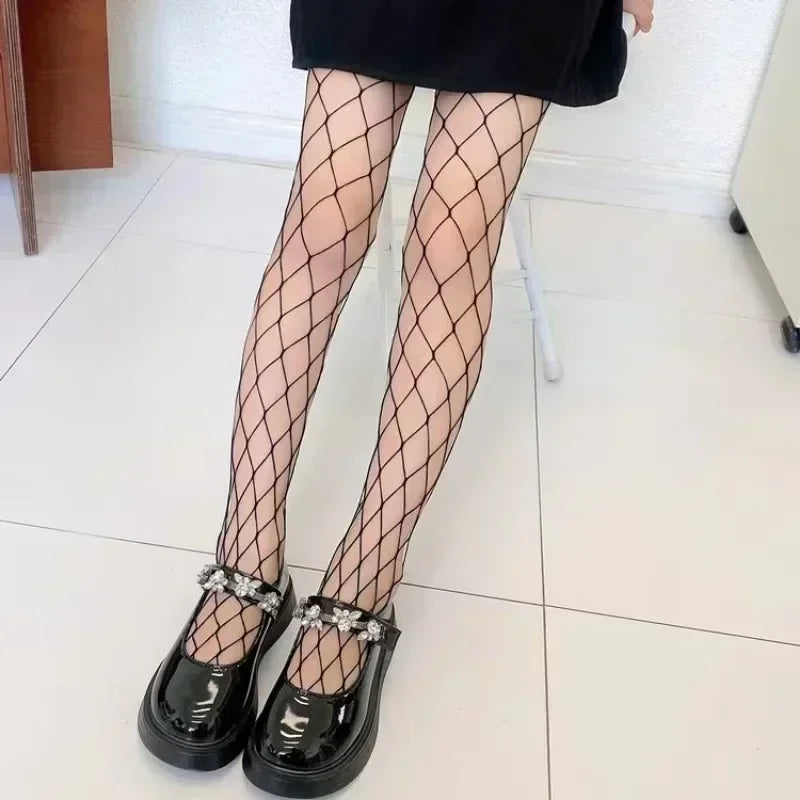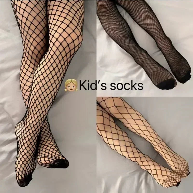 Girls Fashion Fishnet Stockings Kids Baby Mesh Nylon Black Pantyhose Cute Lolita Jumpsuit JK Leggings Parent-Child Hosiery
