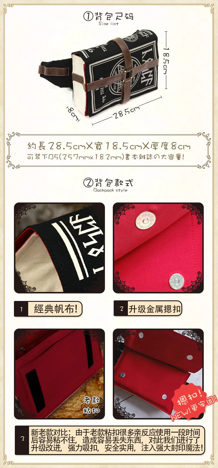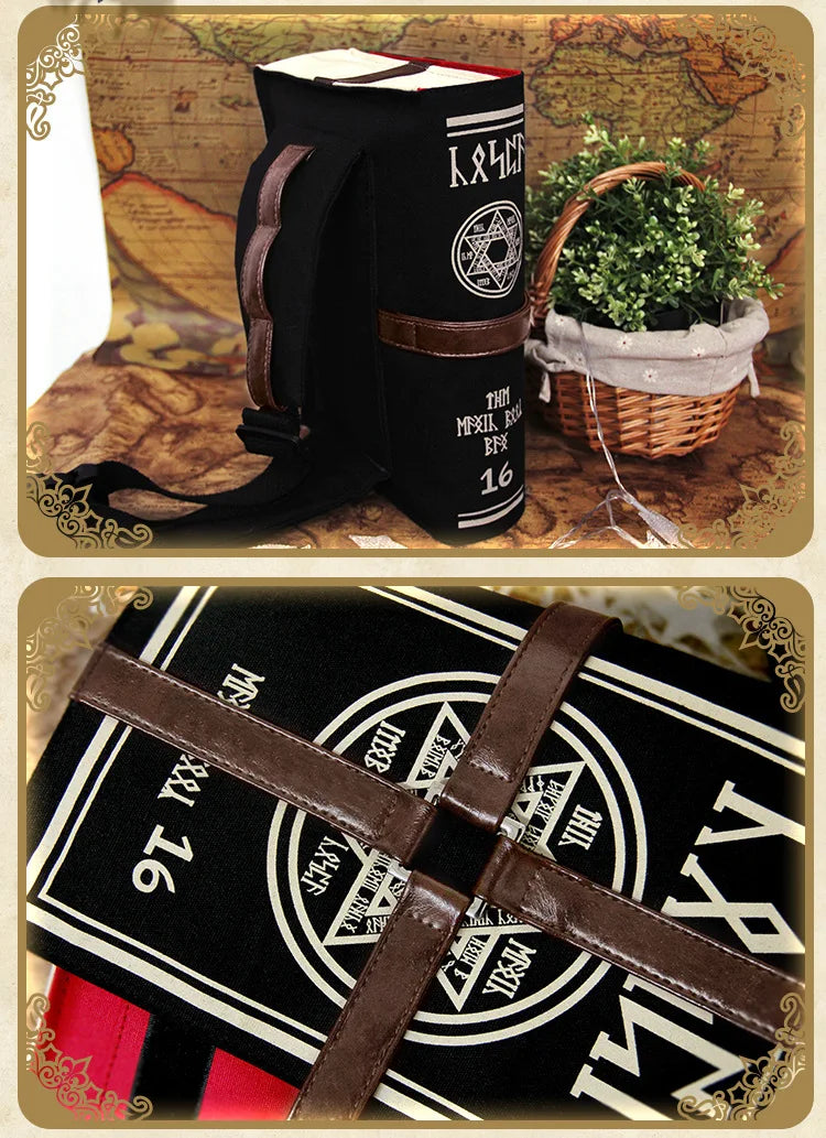 Gothic Spell Book Crossbody Bag, Adjustable Unisex Cosplay Messenger Shoulder Bag for Students