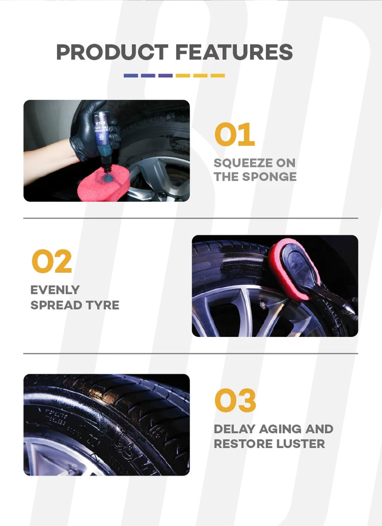 Enhance your vehicle's appearance with our premium Tyre Gloss. Designed to give your tires a sleek and shiny finish, this oil-based tire gel provides long-lasting protection and a dazzling look. With a volume of 3.38 fl oz (100 ml), it's perfect for frequent use, ensuring your tires maintain their vibrant appearance without any harmful chemicals.