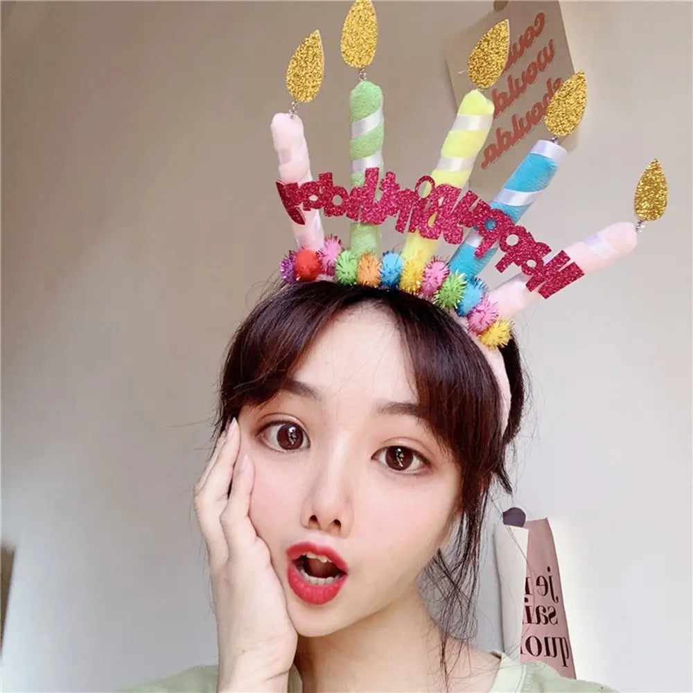 Happy Birthday Crown Hair Decor Candle Kids Korean Style Headband Women Hair Hoop Hair Accessories Birthday Hairband