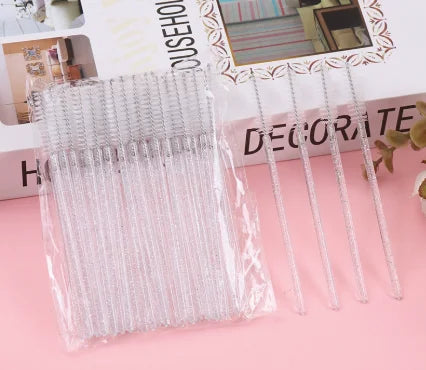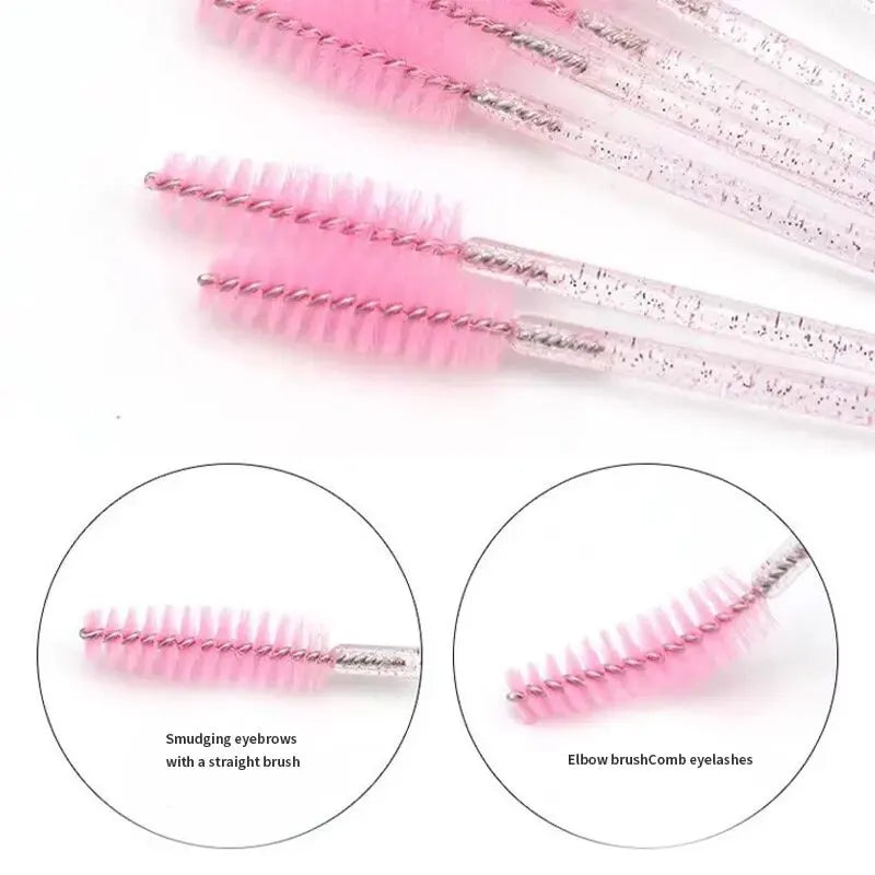 Enhance your beauty regimen with our deluxe mascara and eyebrow brush set. Expertly designed for precision, these brushes combine durable nylon bristles with elegant crystal rod handles, seamlessly blending style with functionality. The spiral design is perfect for effortlessly styling both natural and synthetic lashes, ensuring flawlessly groomed brows and lashes with ease. With a set of 50 brushes, you can achieve salon-quality results in the comfort of your home—ideal for beauty enthusiasts in search of premium grooming tools.