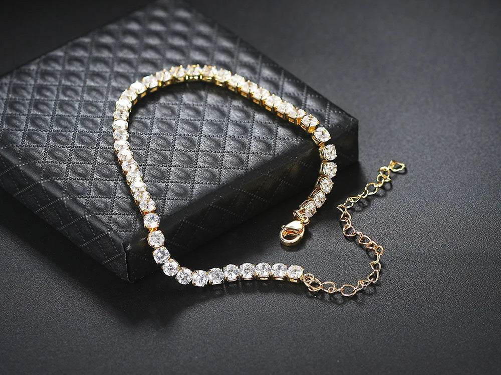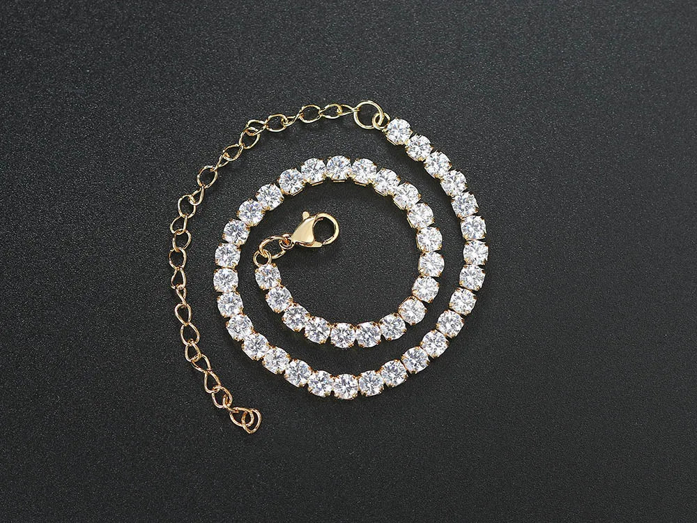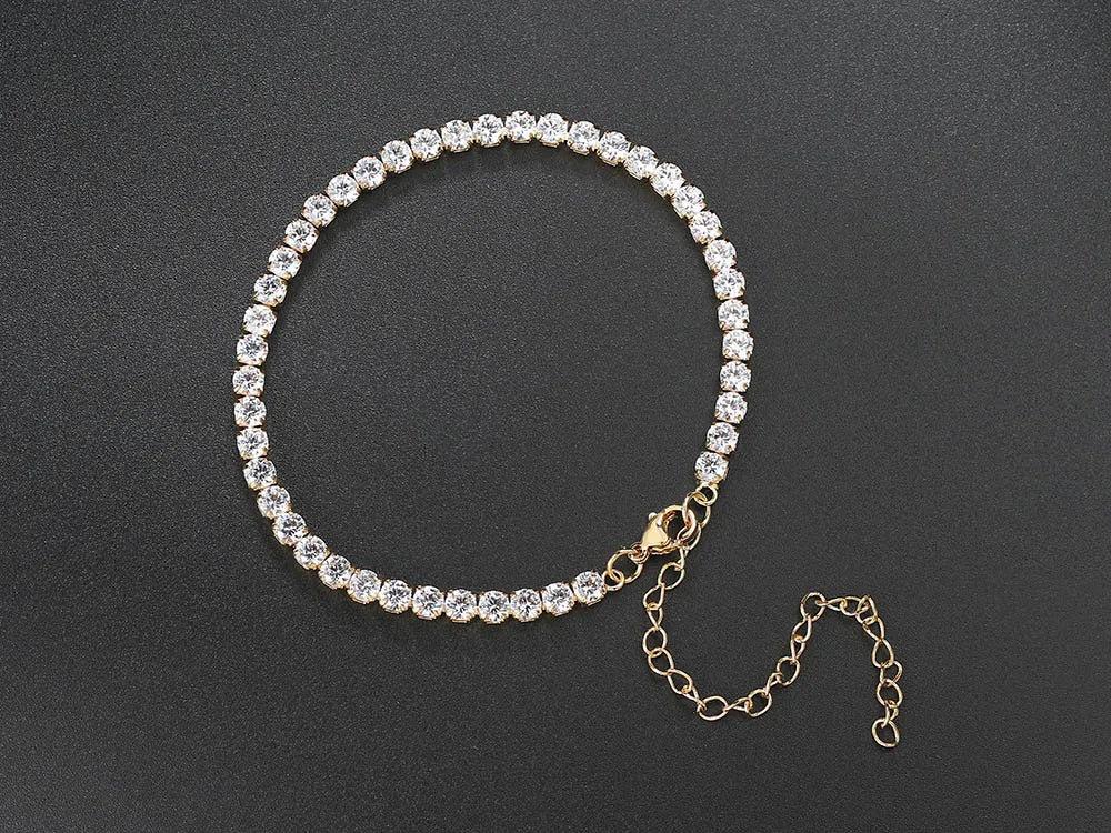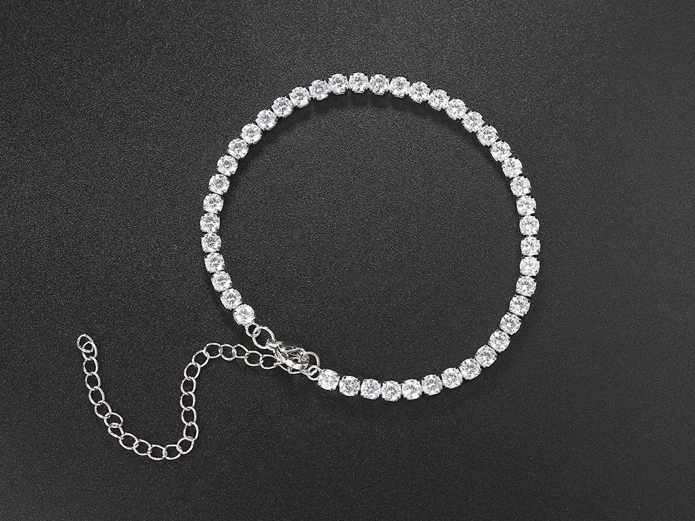 4mm Cubic Zirconia Tennis Bracelet Anklet Chain Silver Color Foot Jewelry 2024 Iced Out Trend Oha001