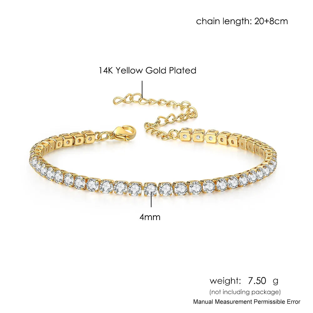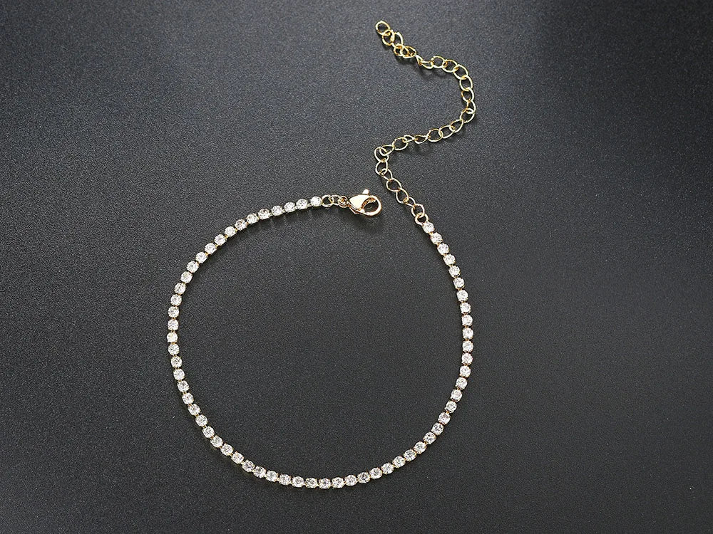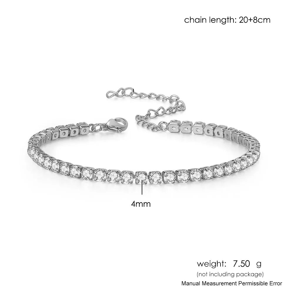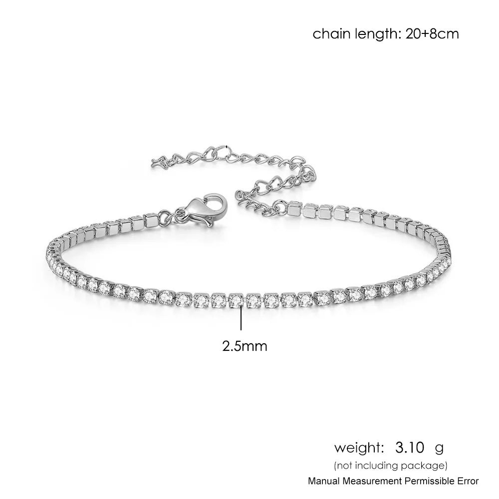 4mm Cubic Zirconia Tennis Bracelet Anklet Chain Silver Color Foot Jewelry 2024 Iced Out Trend Oha001