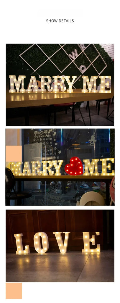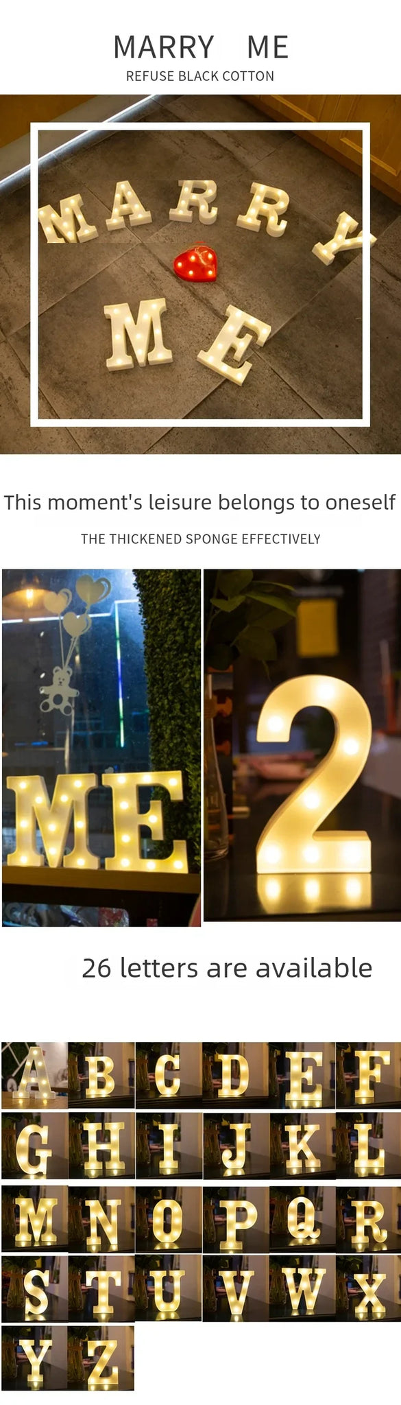 English Alphabet LED Light Lamp for Wedding, Birthday, Proposal, Surprise Night Decor
