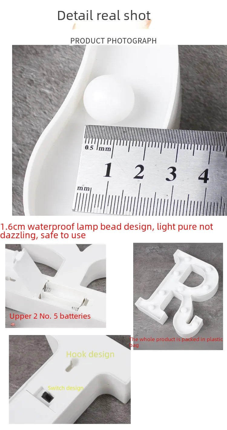 The set includes alphabet lights for all 26 English letters, allowing for a unique and personalized lighting experience. Easy to use and designed for both function and decoration, these lights are an ideal choice for enhancing any event or serving as a chic night light in your home.