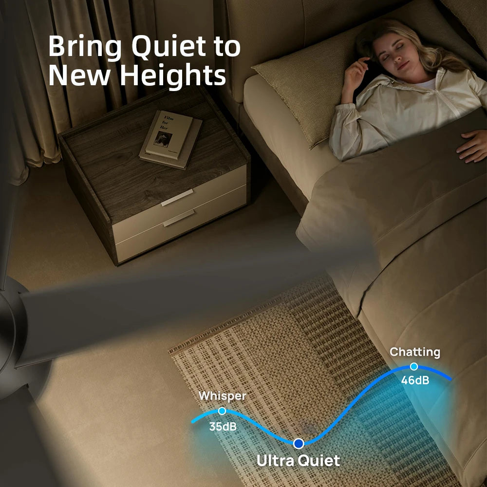 This versatile fan features dual modes for year-round comfort: in summer, it delivers a refreshing downward airflow, while in winter it circulates warmth with an upward airflow. The silent DC motor ensures a peaceful environment, making it perfect for bedrooms, living rooms, kitchens, and more.