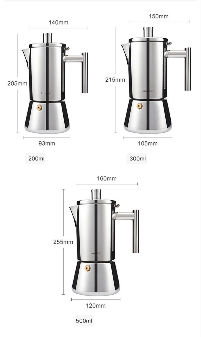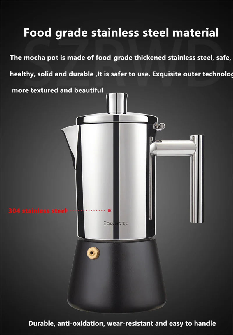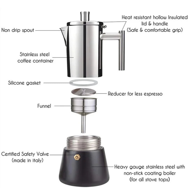 Italian Moka Espresso Maker Stainless Steel Coffee Pot for Gas or Induction Stove, Cuban Style Mocha Kettle
