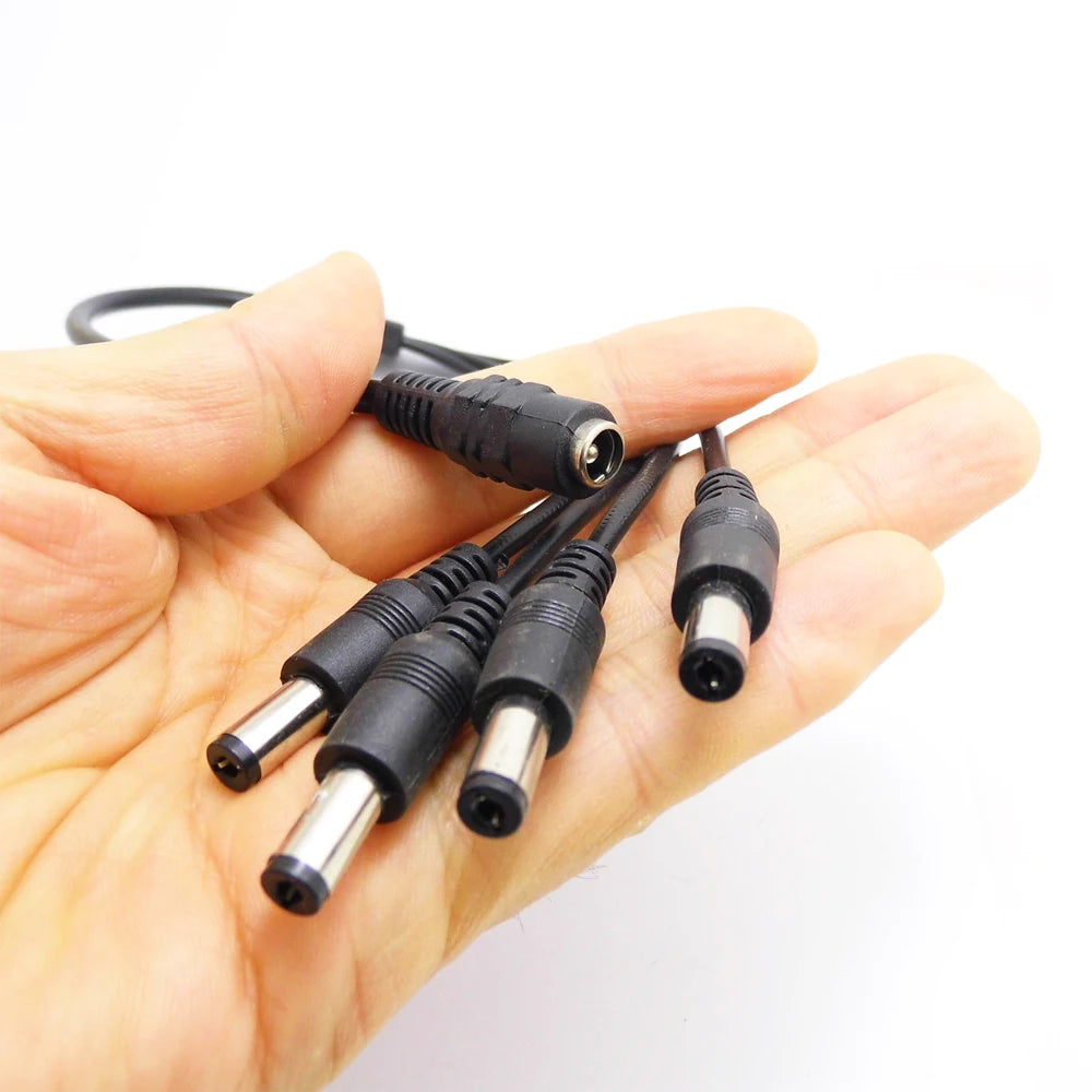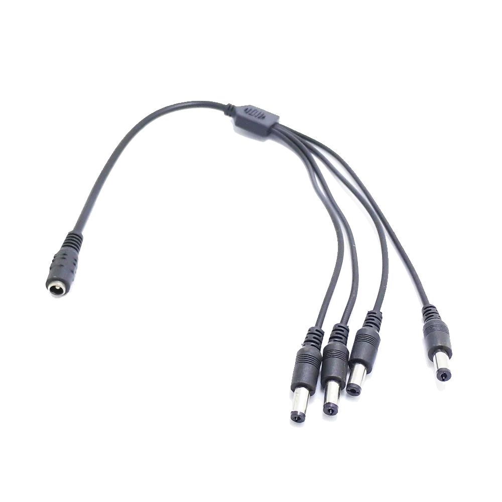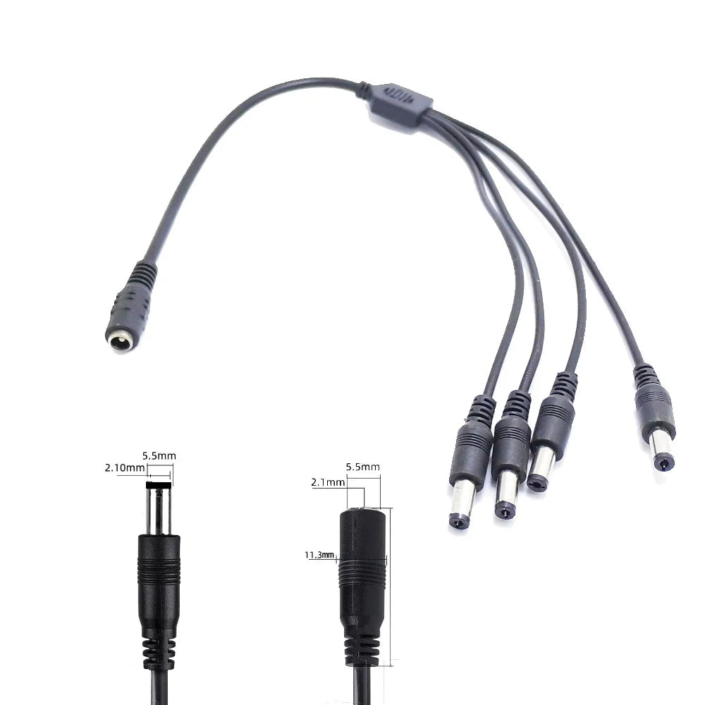 - 1 to 4 Power Splitter: One DC female input to four DC male outputs.