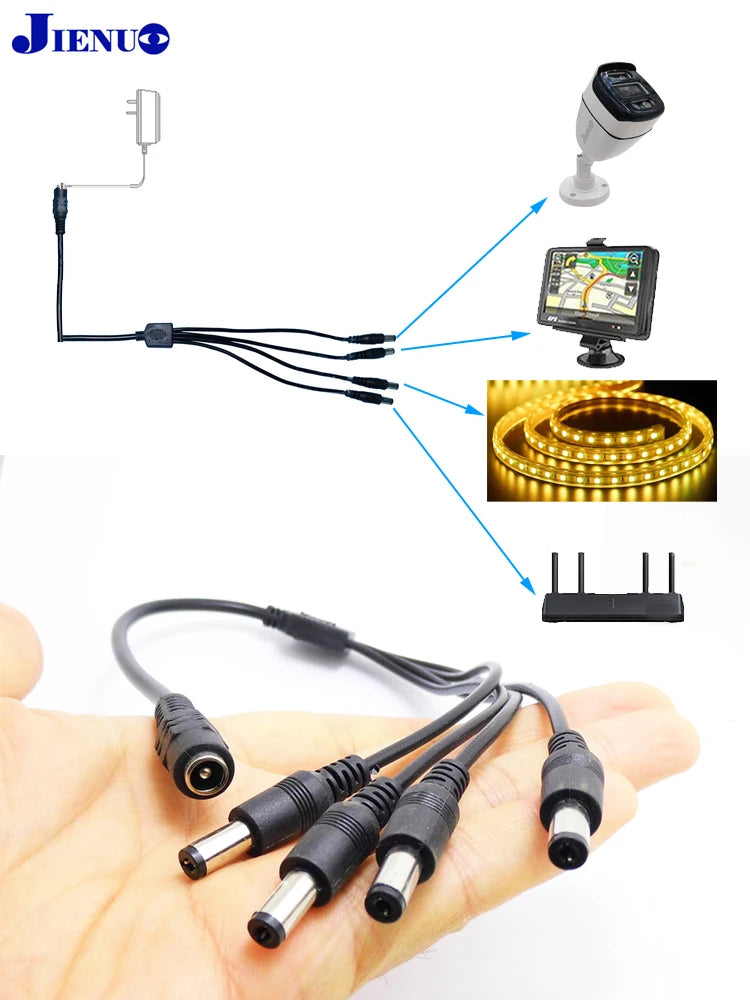 Upgrade your CCTV security and LED lighting setup with the JIENUO DC Power Splitter Adapter Cable. Specially designed to streamline your installation process, this cable features one DC female input to four DC male outputs, making it ideal for simplifying tangled wiring. Each DC port conforms to the standard 2.5mm size, ensuring compatibility with most devices.