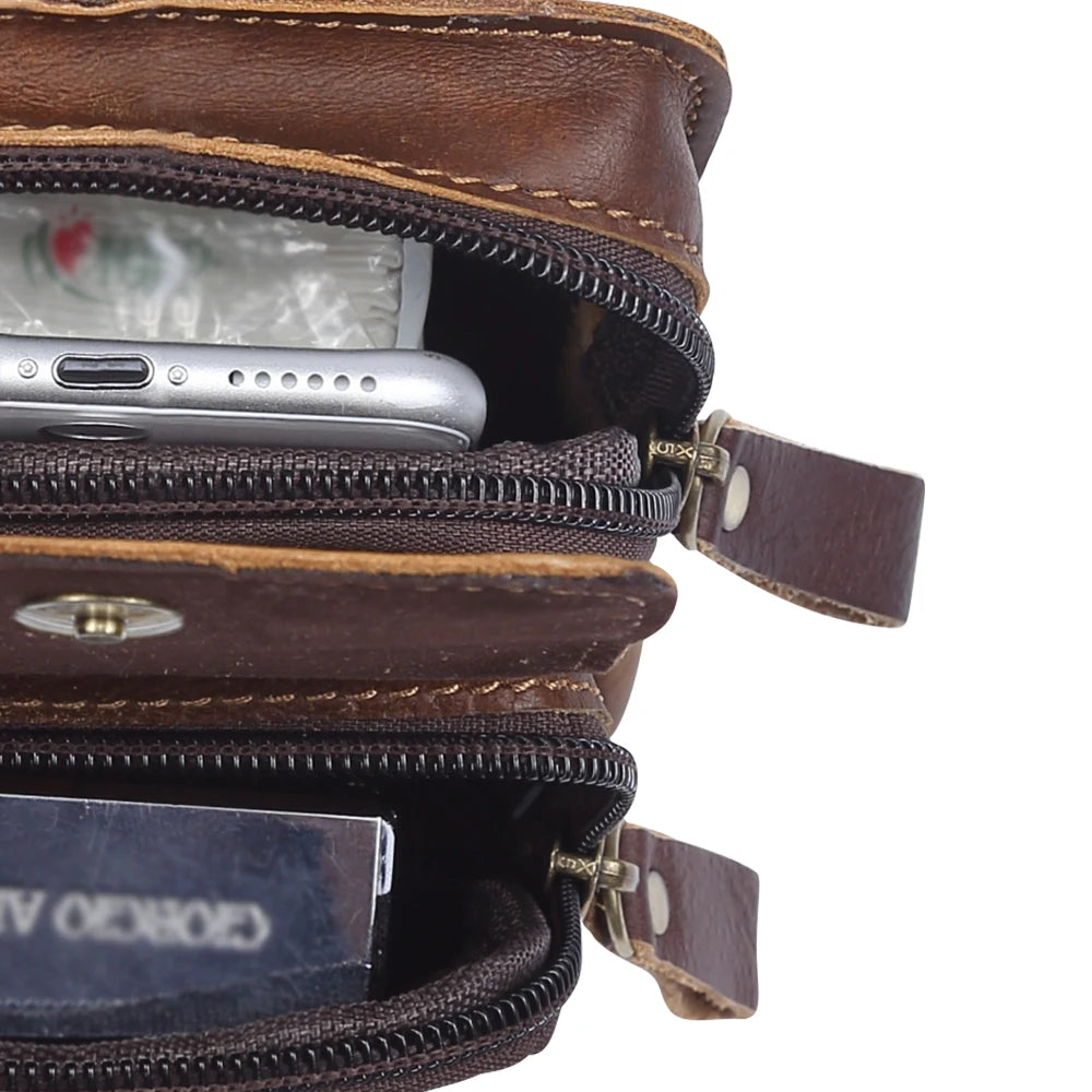 Genuine Leather Men's Waist Pack Vintage Bum Bag Money Belt Pouch Fanny Pack for Men