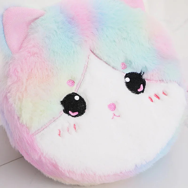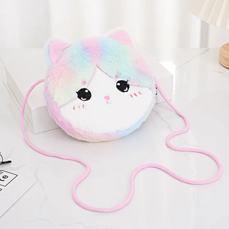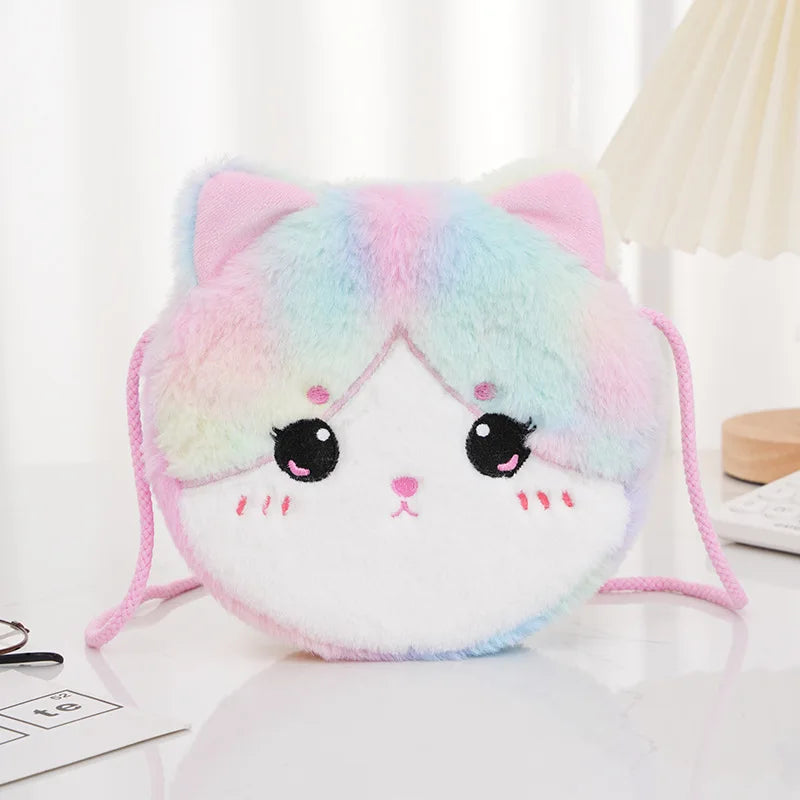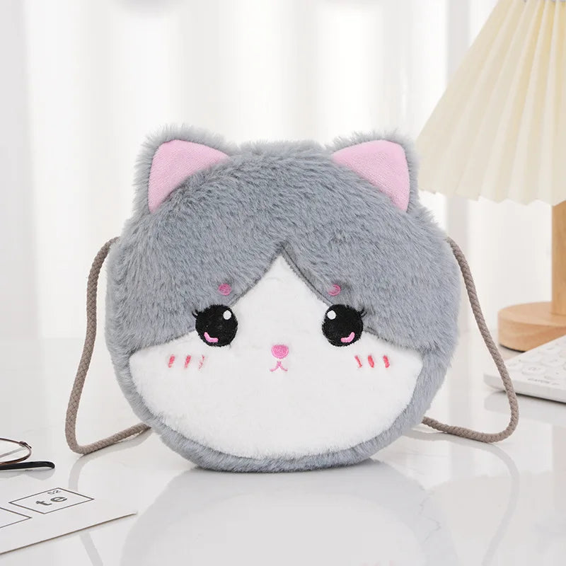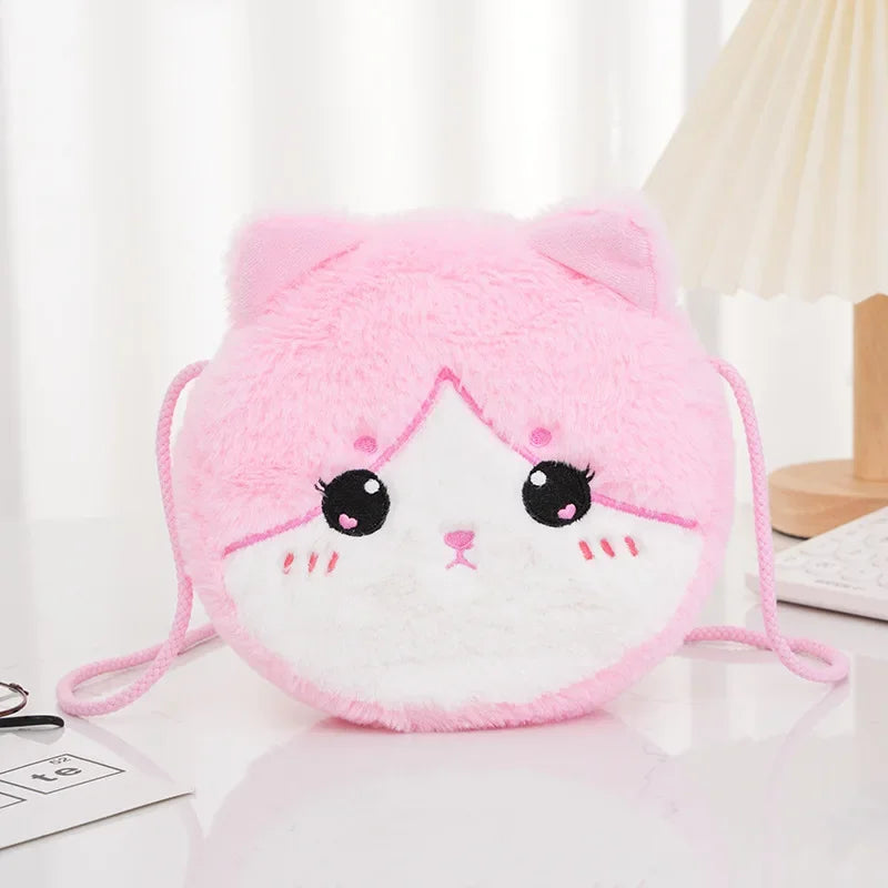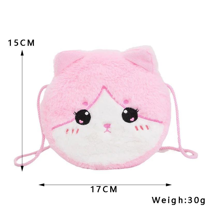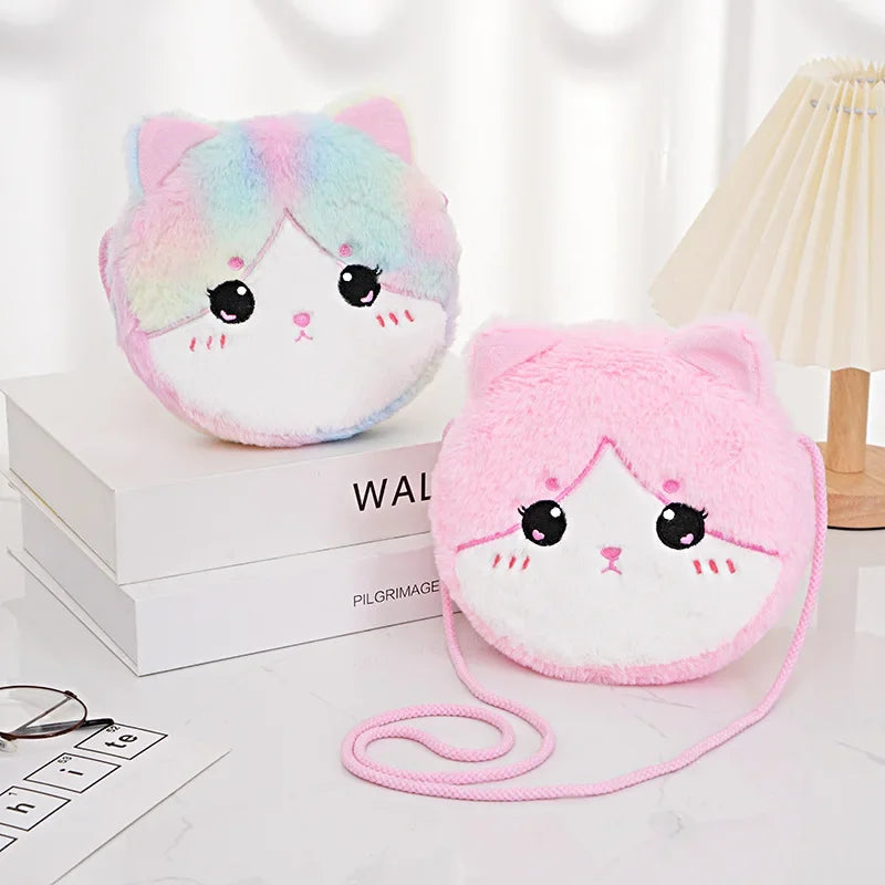 Cute Cartoon Cat Crossbody Shoulder Bag for Kids - Plush Round Wallet 2024