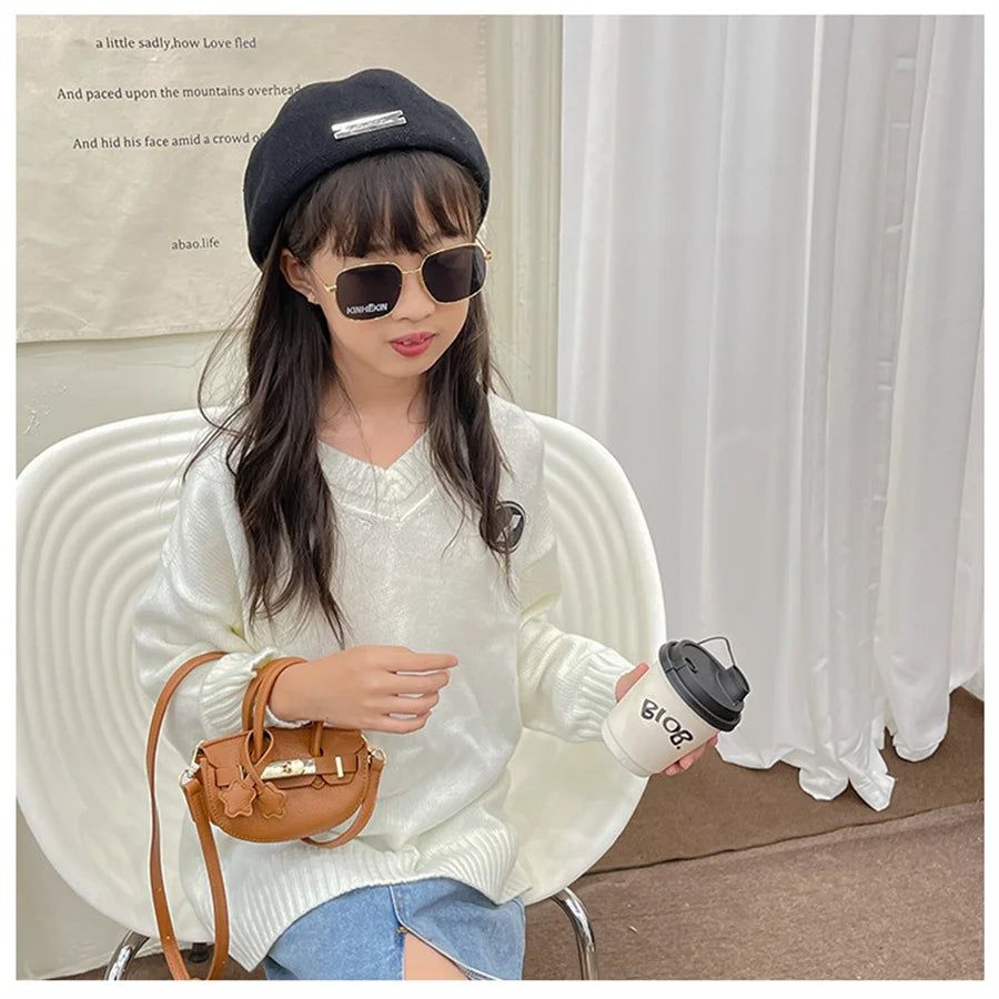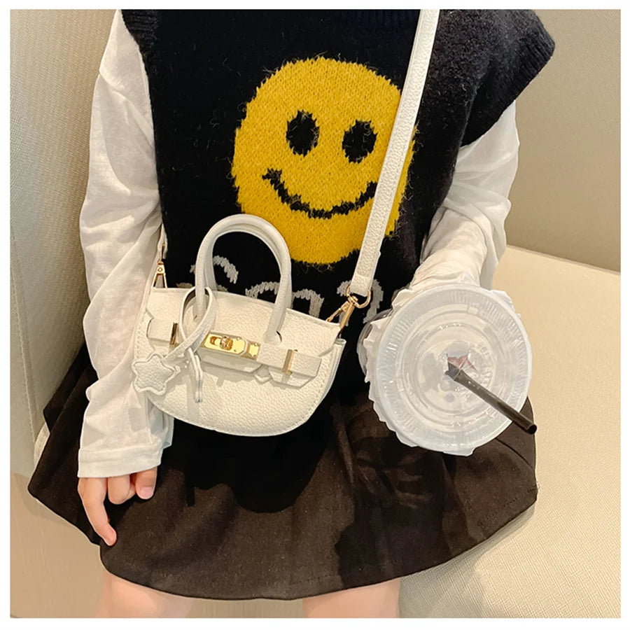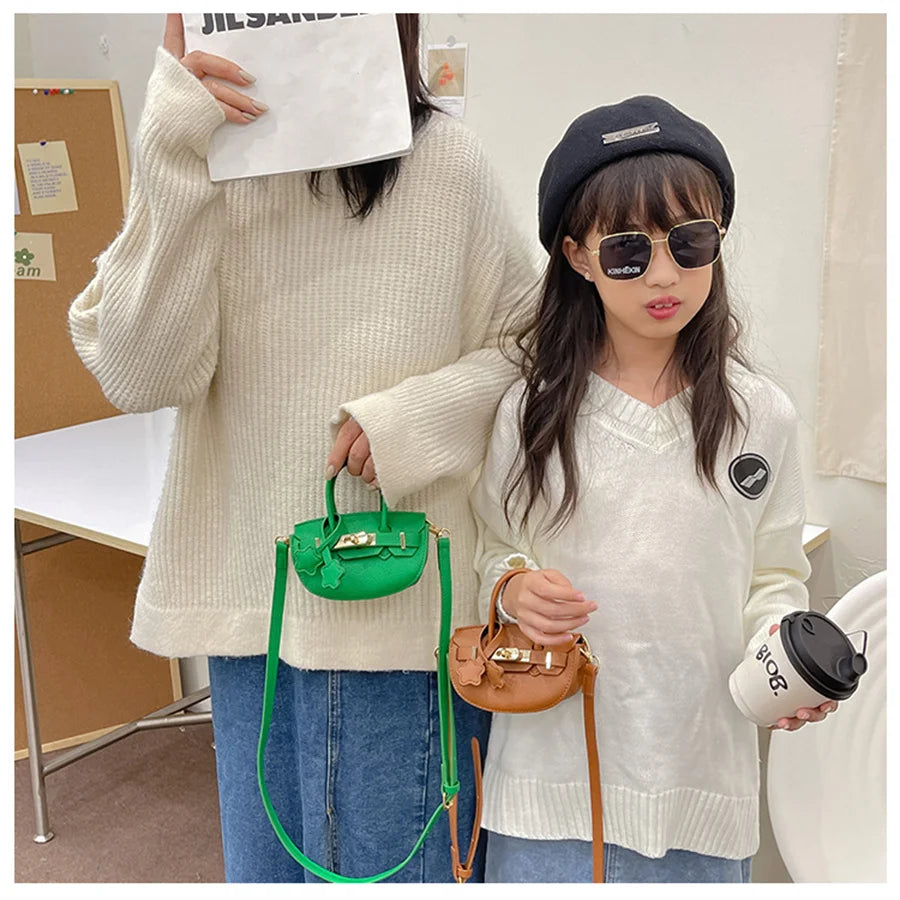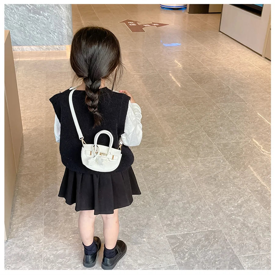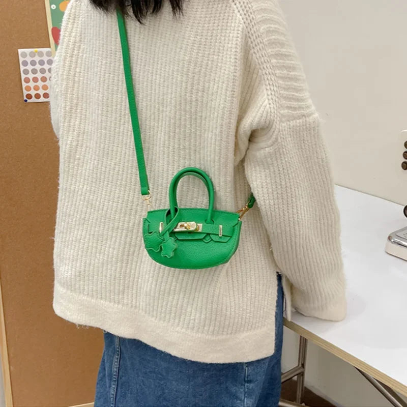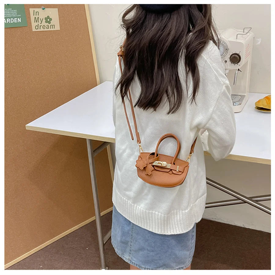 Girls' Lychee Pattern Half Round Mini Handbag - Kids Diagonal Crossbody Bag