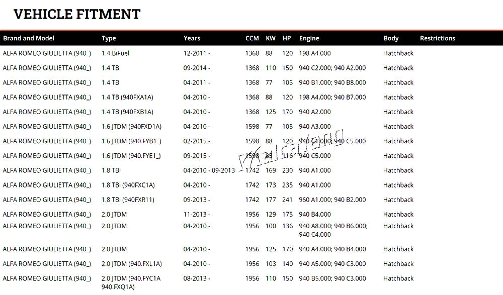 - Compatibility: Alfa Romeo Giulietta 940 (2010-2020)
