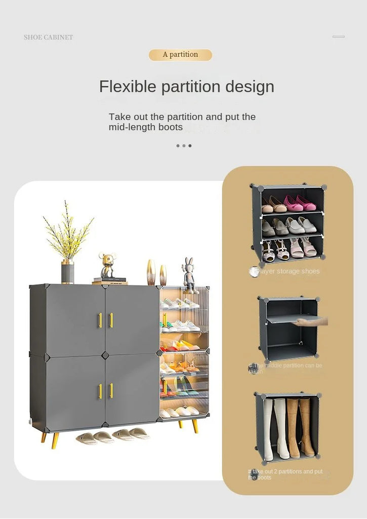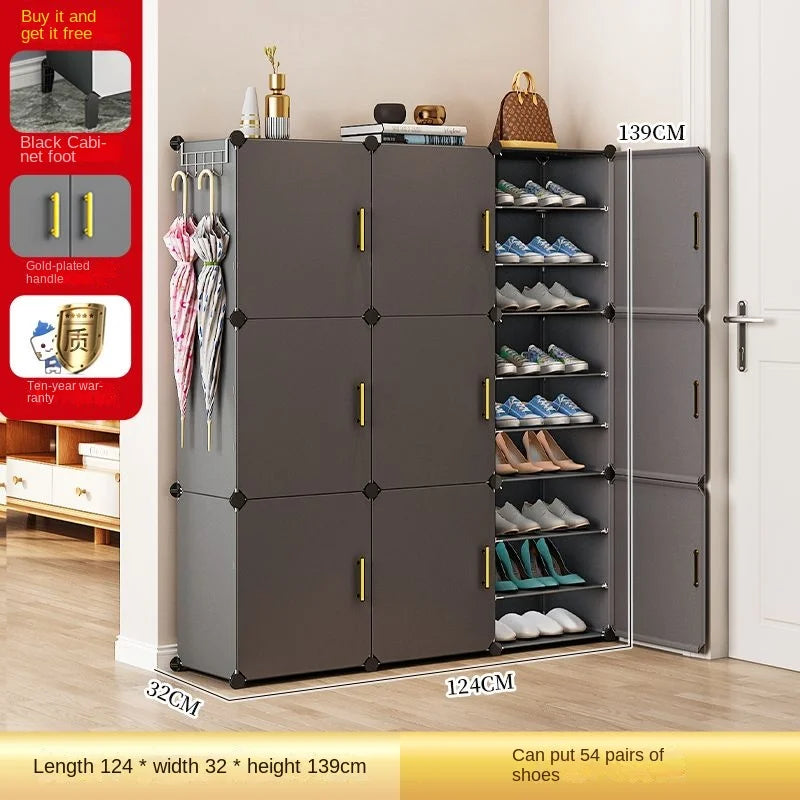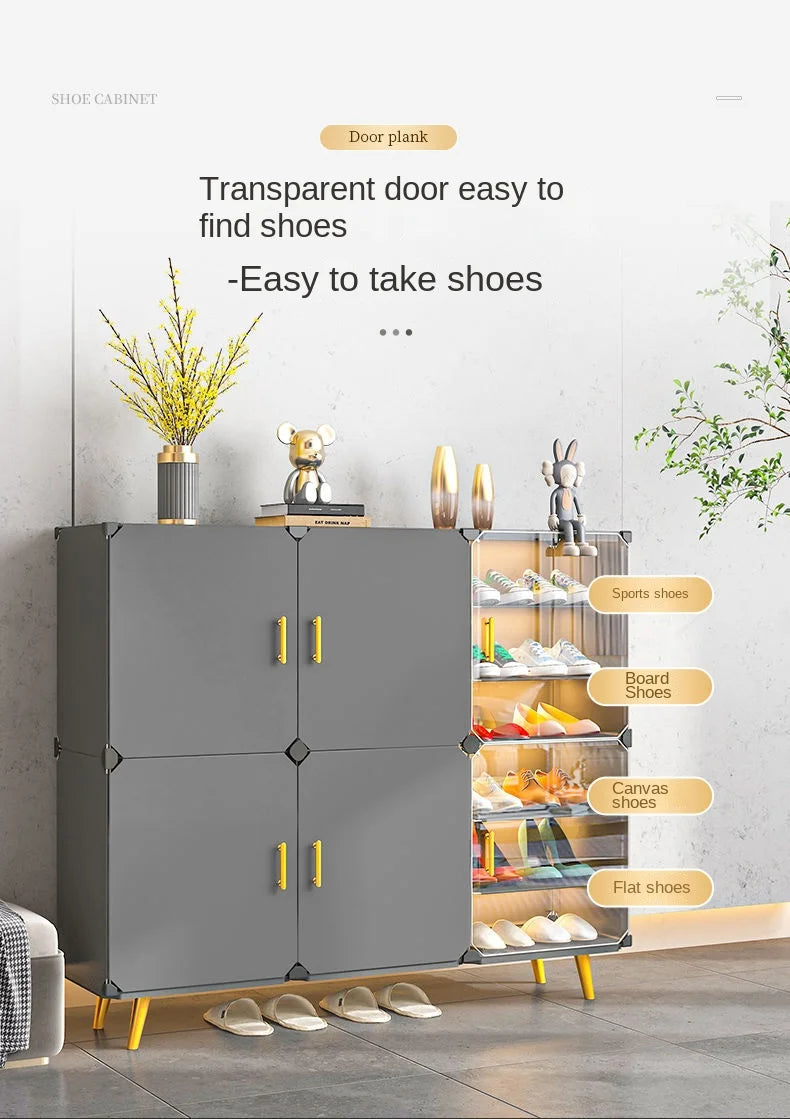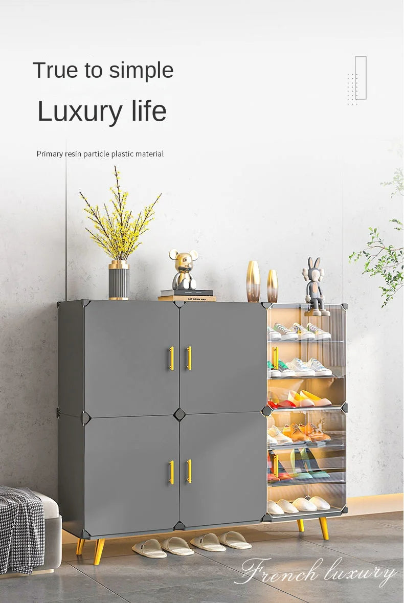 Enhance your home with this modern and minimalist shoe rack, designed to seamlessly blend with your living room, hallway, or bedroom decor. This space-saving shoe storage organizer offers more than 10 drawers to accommodate all your footwear needs, ensuring a clutter-free environment. Crafted from durable plastic, it's ideal for households that appreciate both functionality and style. Its customizable design allows you to tailor the setup to suit your space, making assembly straightforward. Whether you’re looking to organize sneakers, sandals, or formal shoes, this dustproof shoe cabinet provides the perfect solution.