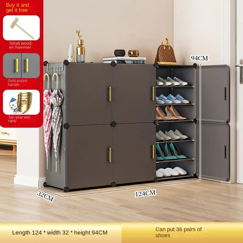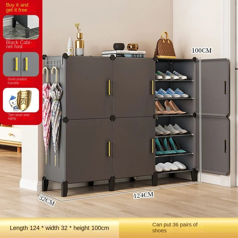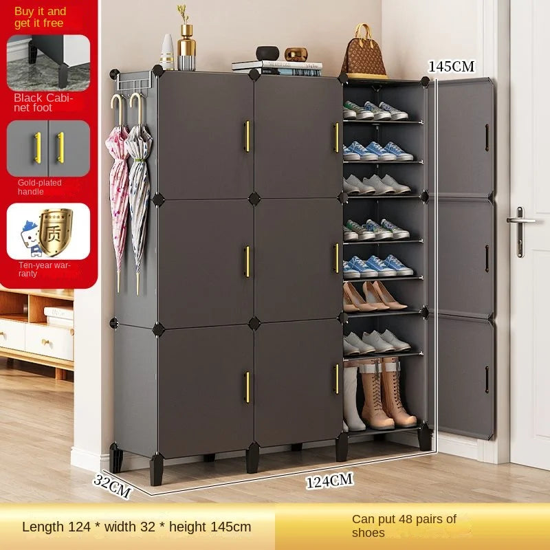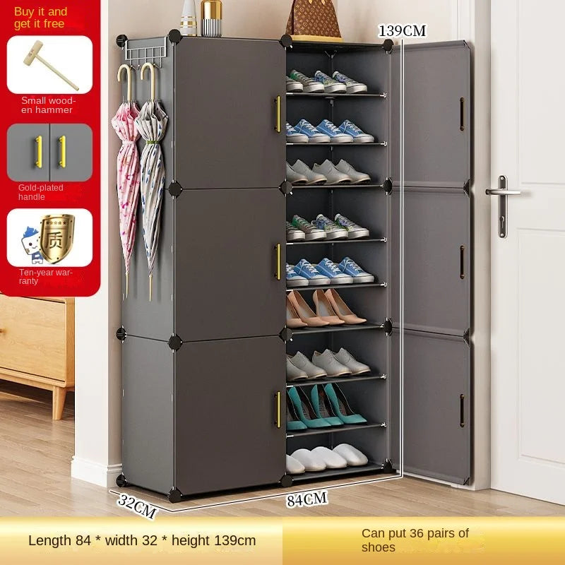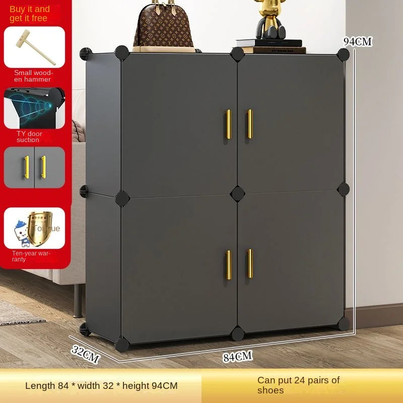 Enhance your home with this modern and minimalist shoe rack, designed to seamlessly blend with your living room, hallway, or bedroom decor. This space-saving shoe storage organizer offers more than 10 drawers to accommodate all your footwear needs, ensuring a clutter-free environment. Crafted from durable plastic, it's ideal for households that appreciate both functionality and style. Its customizable design allows you to tailor the setup to suit your space, making assembly straightforward. Whether you’re looking to organize sneakers, sandals, or formal shoes, this dustproof shoe cabinet provides the perfect solution.