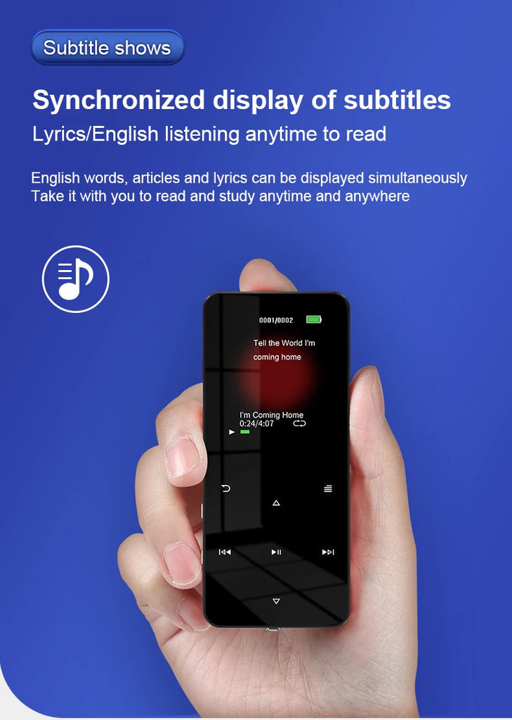 Discover a new way to enjoy music with our feature-packed MP3 Music Player. Equipped with a sleek 1.8-inch color touch screen, this player offers an intuitive interface that’s perfect for music enthusiasts. Featuring lossless sound quality, you’ll experience your favorite tracks like never before. Connect seamlessly using Bluetooth 5.0 for a wireless audio experience.