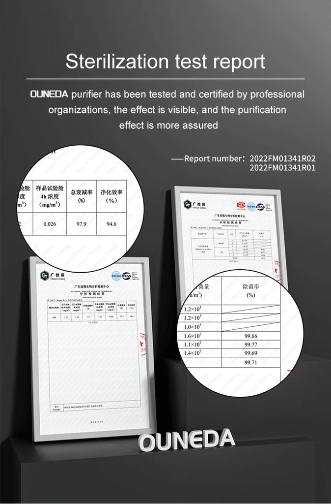 The air purifier is designed with usability in mind, featuring a portable build and user-friendly wind speed regulation, offering high, medium, and silent settings to suit your preference. Certified by EMC, ETL, ROHS, and CE, it promises safety and reliability.