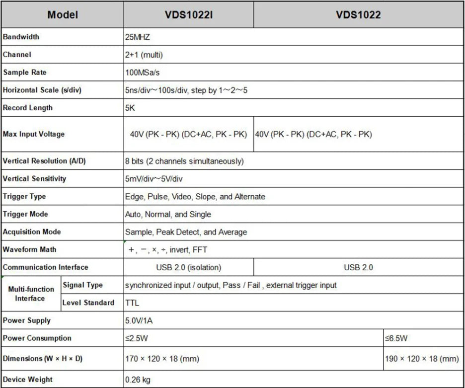 Note: The distinction between model VDS1022 and VDS1022I lies in the isolated power feature of the VDS1022I, which offers additional protection for your computer.