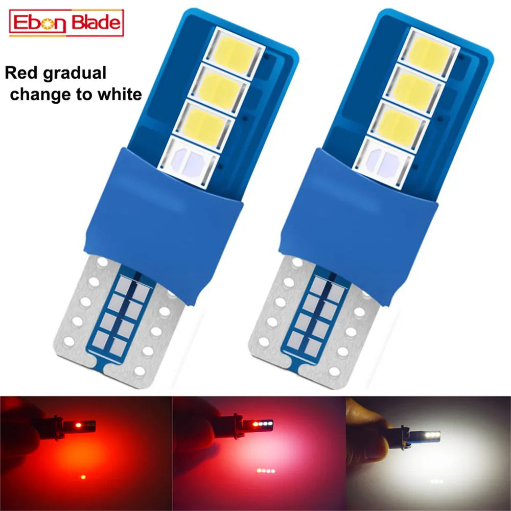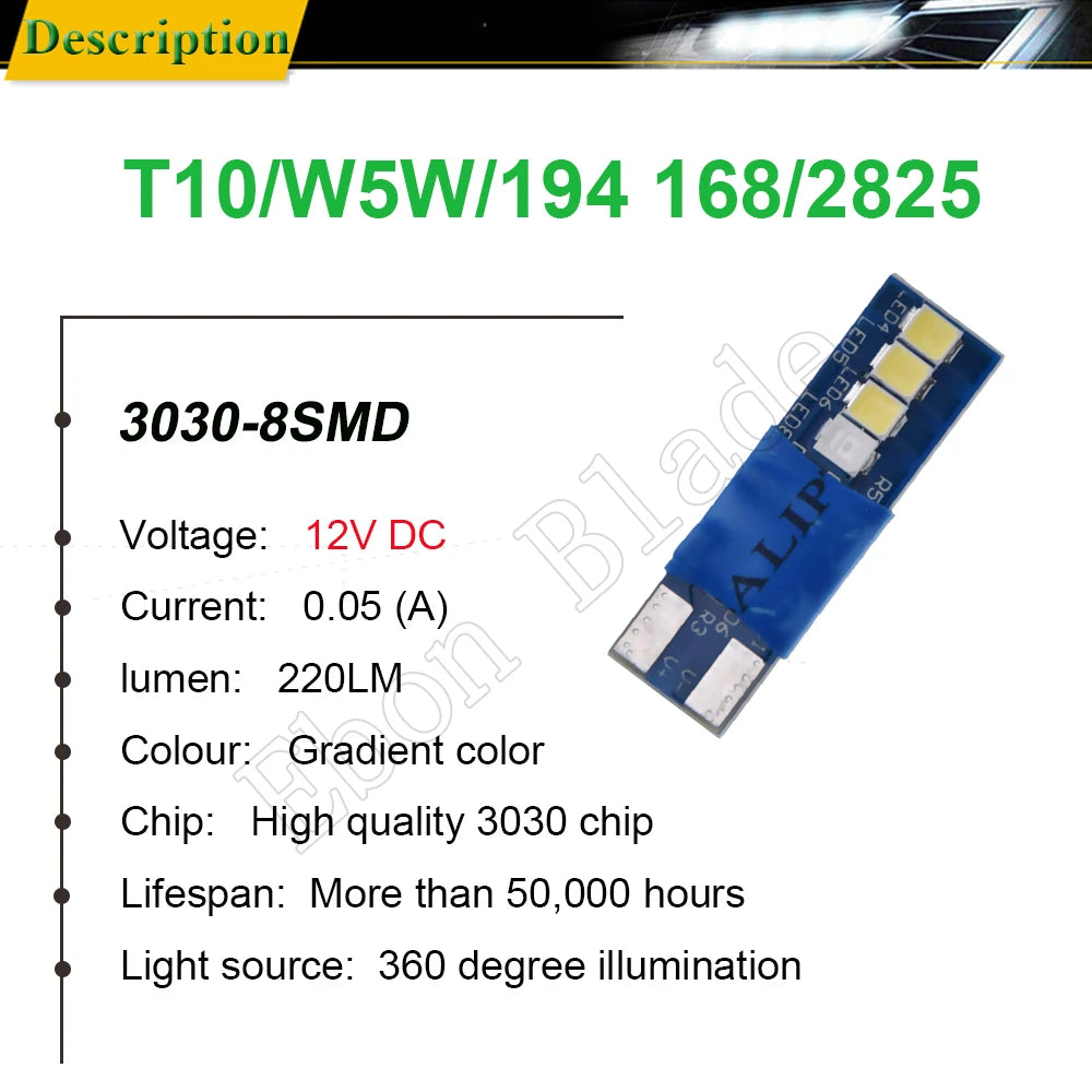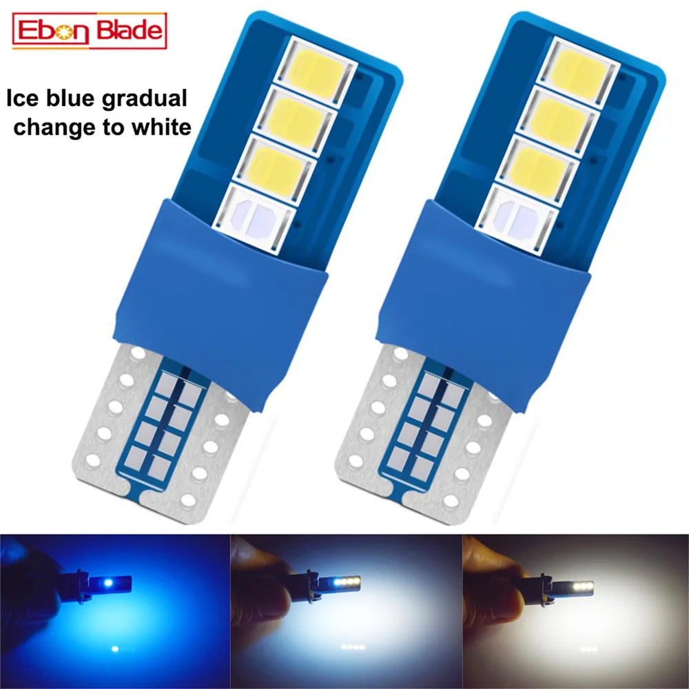 2x T10 5W5 LED Car Bulb Blue to White 194 168 Interior Dome Map Light 3030 8SMD 12V