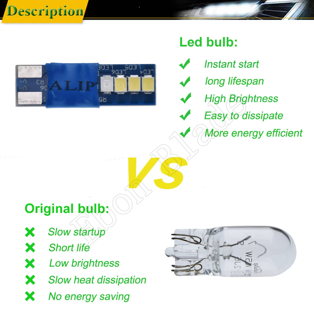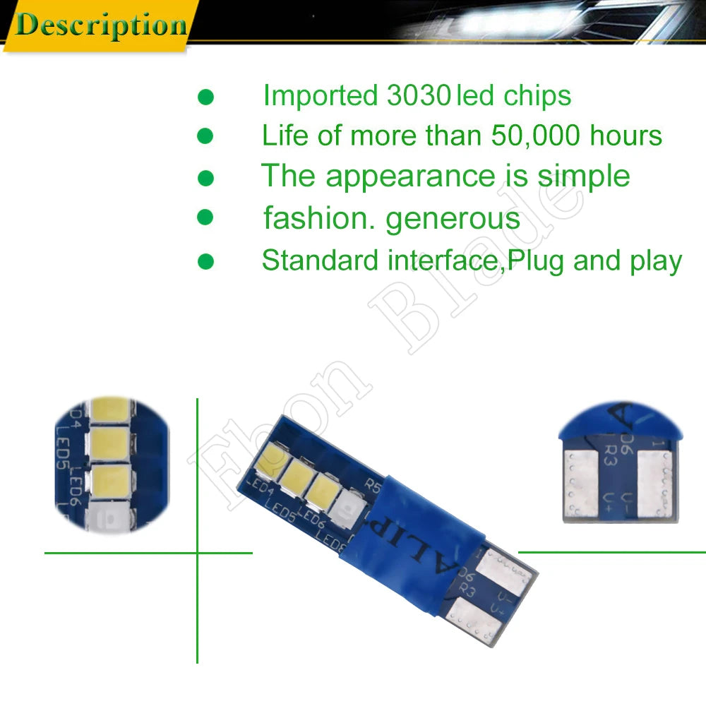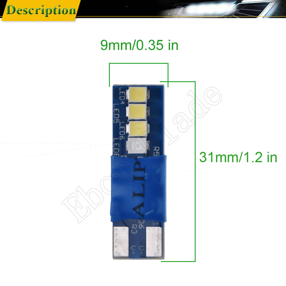 Enhance your vehicle's interior lighting with these compact and powerful LED bulbs. Designed to fit most car models, these T10 LED bulbs are equipped with 8 high-quality 3030 LED chips, delivering up to 760 lumens of brightness. Enjoy a long-lasting performance with a lifespan of up to 50,000 hours, providing clear illumination for your car's interior. Easy to install in standard T10 sockets, these bulbs are perfect for dome and map reading lights.