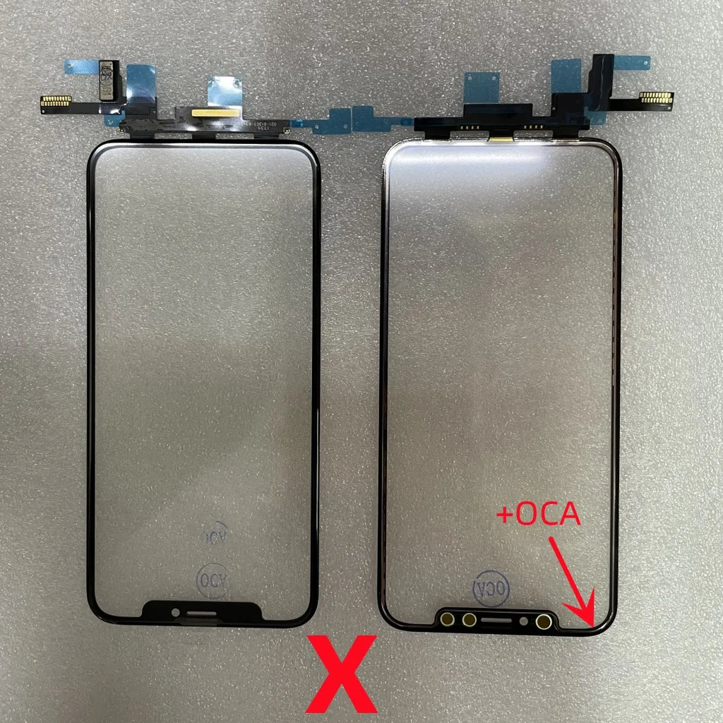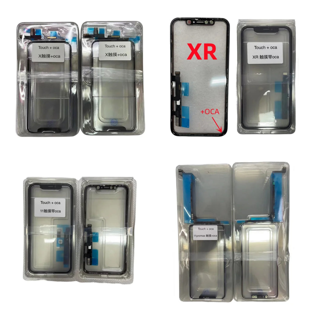 Upgrade your iPhone with our seamless 5-piece Touch Screen and OCA Glue Kit. Designed for compatibility with iPhone models X, Xs Max, XR, 11, 12, 13, and 14 ProMax, this no-welding digitizer front glass lens offers an exceptional solution for screen replacements and repairs. Perfect for technicians or DIY enthusiasts, ensure your phone's display is crisp and responsive with our high-quality touch screen panel.