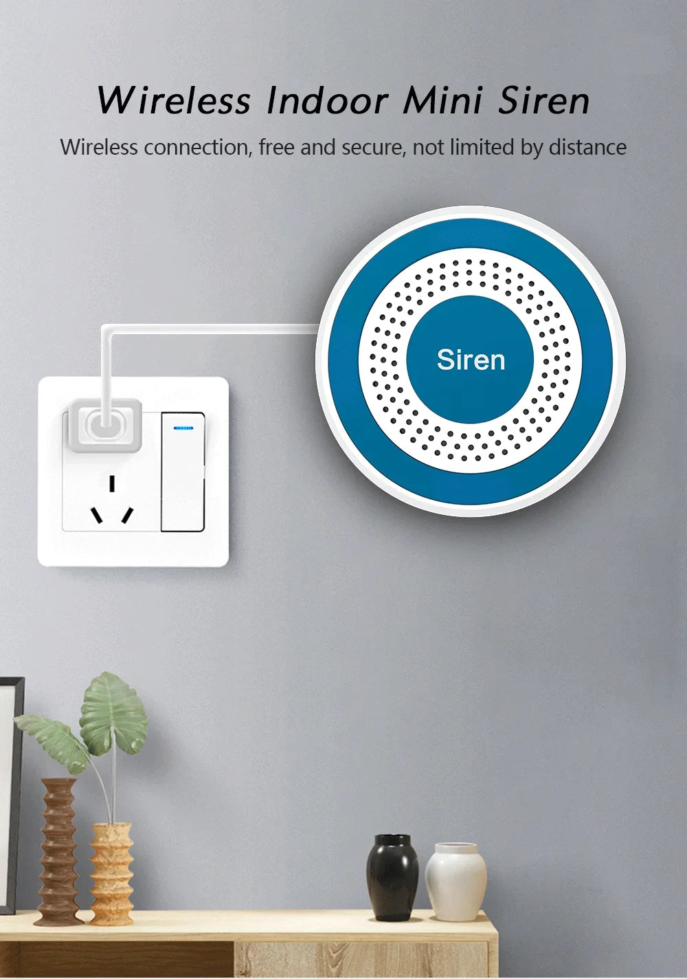433MHz Wireless Indoor Siren with Strobe Light - 110dB Alarm System for Intruder Detection