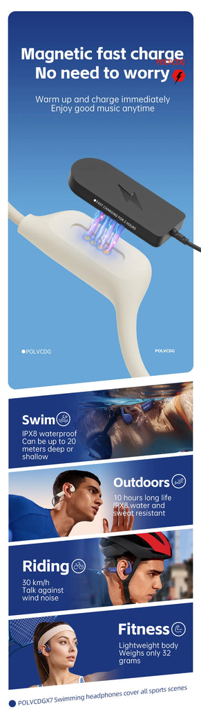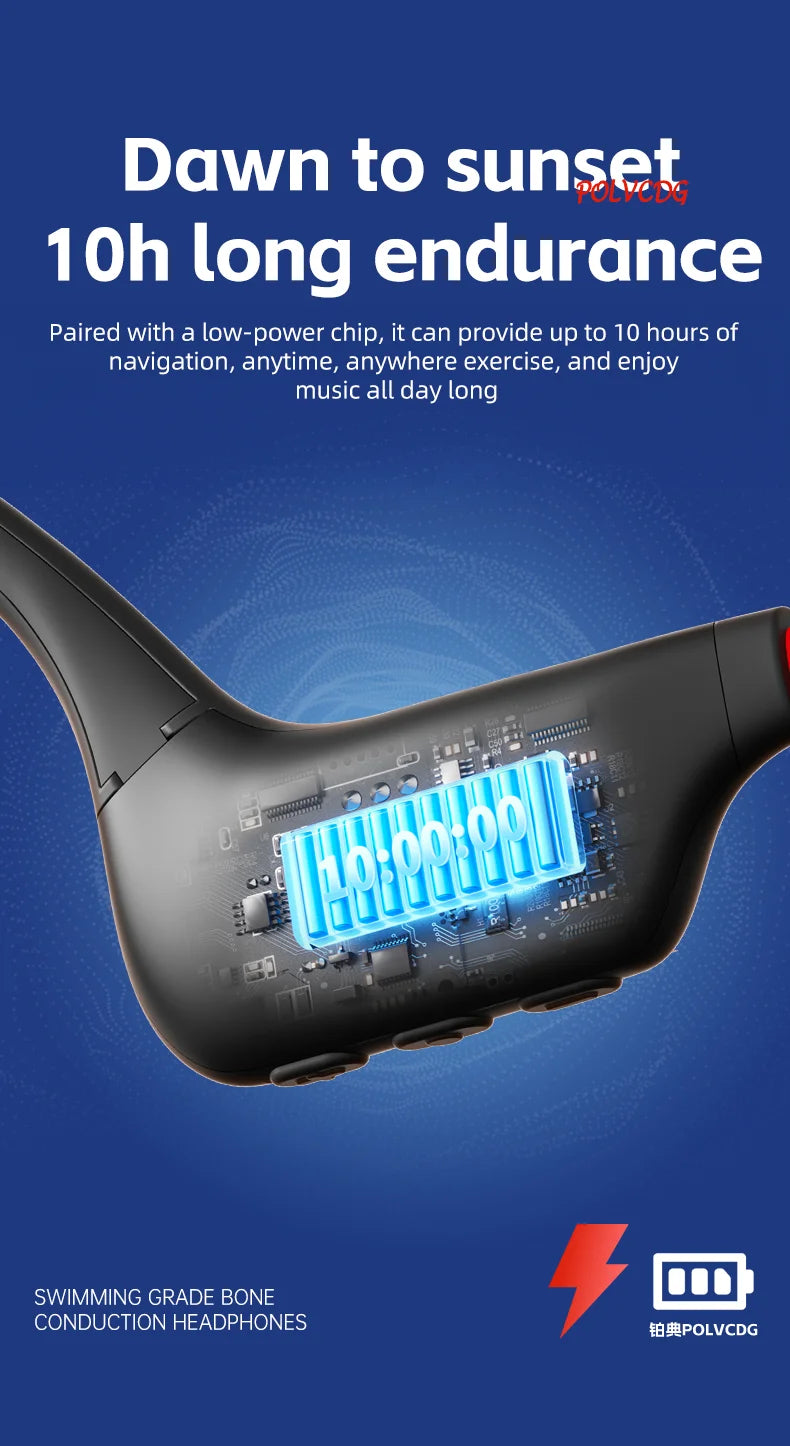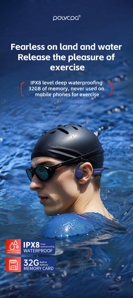 32GB Waterproof Bone Conduction Headset Bluetooth 5.3 Mic Swim IPX8 Wireless 2024