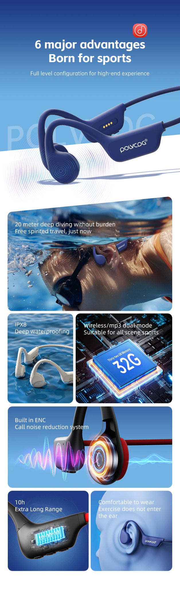 Experience superior audio performance with our advanced wireless ear hook headphones, designed for an active lifestyle. Perfect for sports enthusiasts, these headphones boast an impressive IPX8 waterproof rating, allowing for seamless use while swimming or engaging in intense workouts. Featuring 32GB of internal memory, you can store over 6000 songs, enabling music playback without a phone. Switch effortlessly between Bluetooth and MP3 modes for versatile listening.