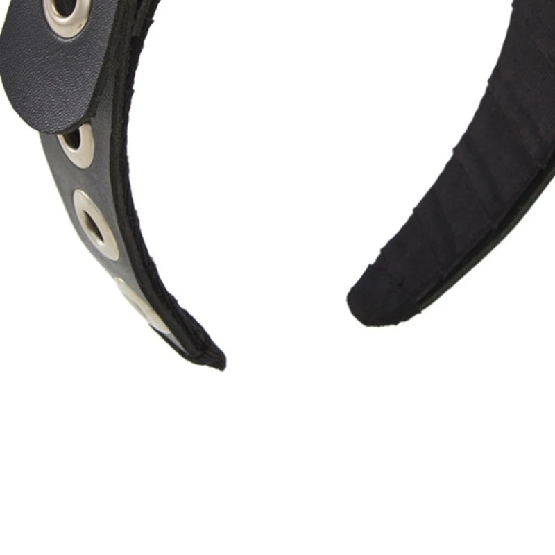 Elevate your style with this stunning PU Leather Headband, perfect for adding a touch of gothic elegance to any outfit. Crafted from high-quality synthetic leather, this unique headpiece features intricate metal buckles and a distinctive punk rock design, making it a must-have accessory for parties, Halloween, Christmas carnivals, masquerades, and more. Its non-slip and soft construction ensures a comfortable fit for all-day wear, while the adjustable design suits any adult head size.