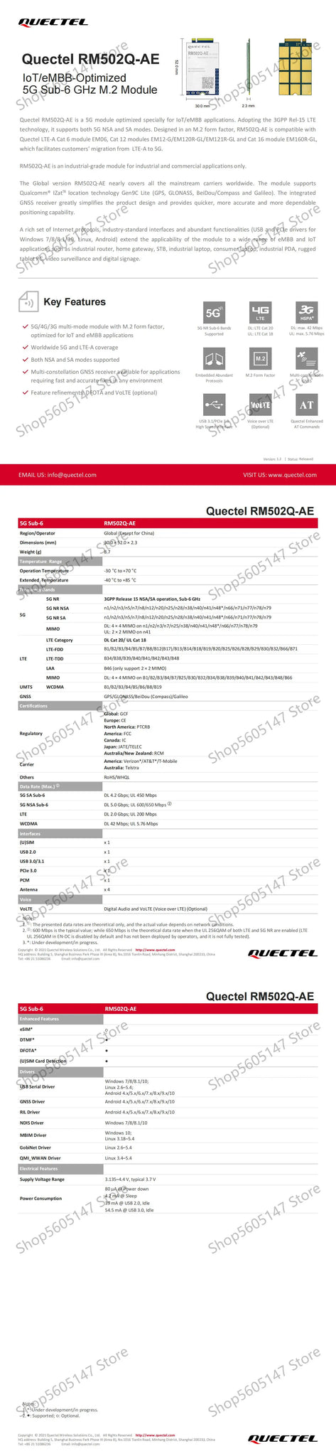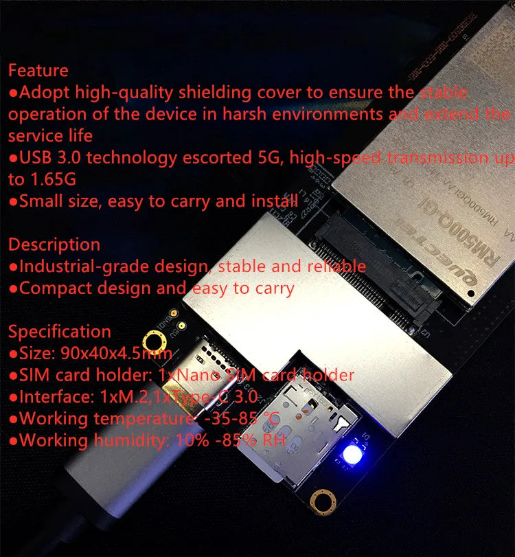 5G Global Module RM502Q-AE Sub-6GHz M.2 with Type-C to USB Adapter & SMA Female to IPEX4 Pigtail Antenna