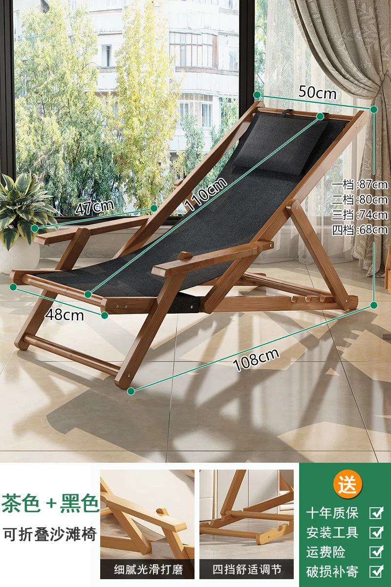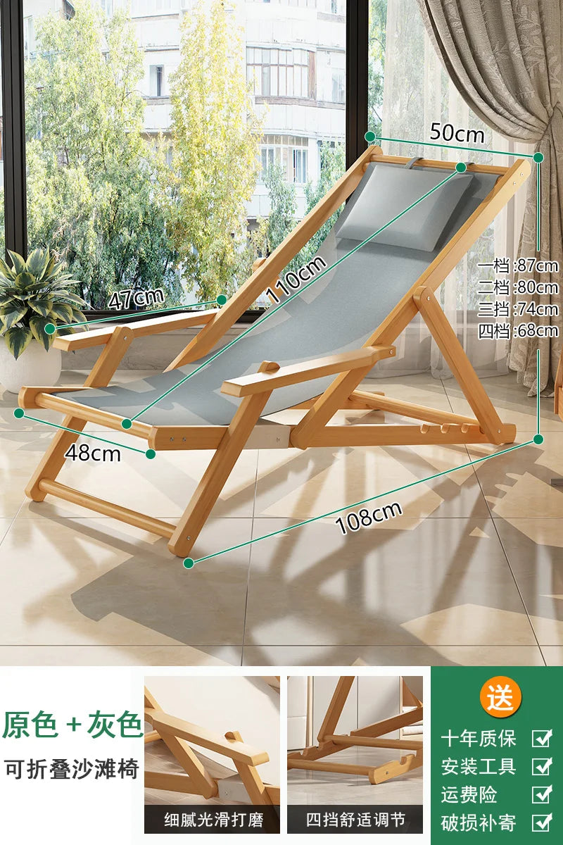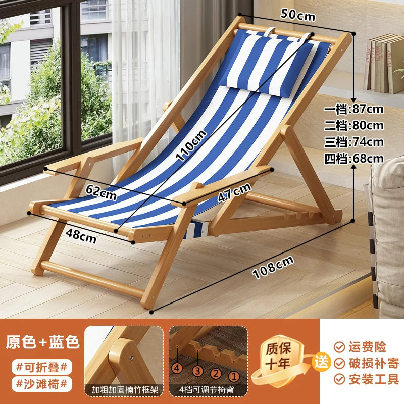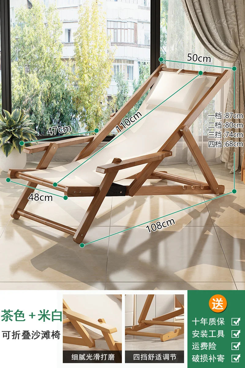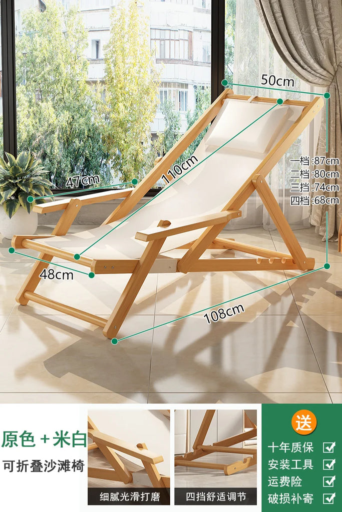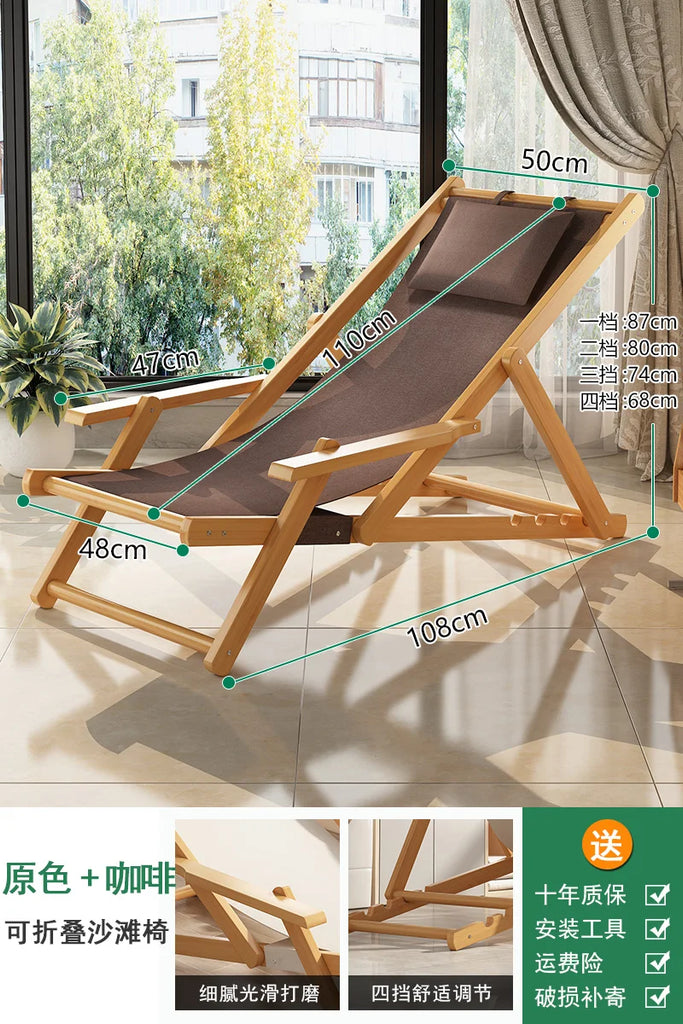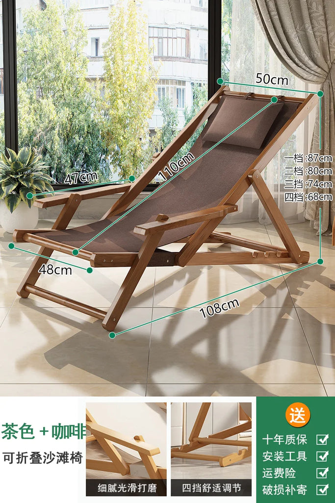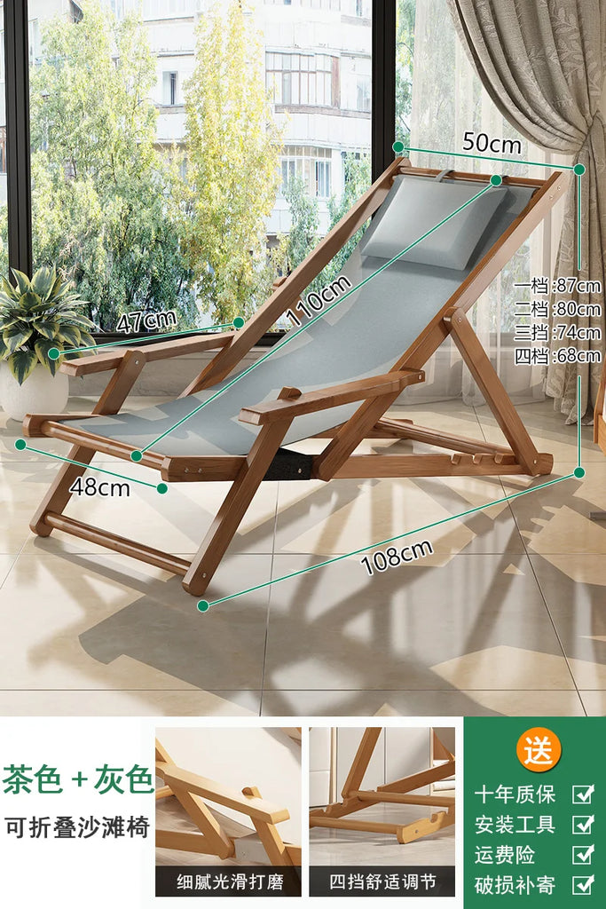 Folding Recliner Beach Chair Adjustable Sunlounger for Balcony & Picnic