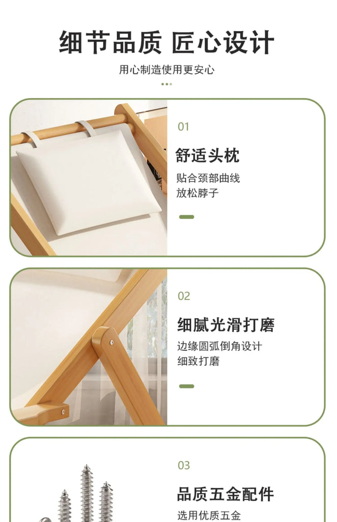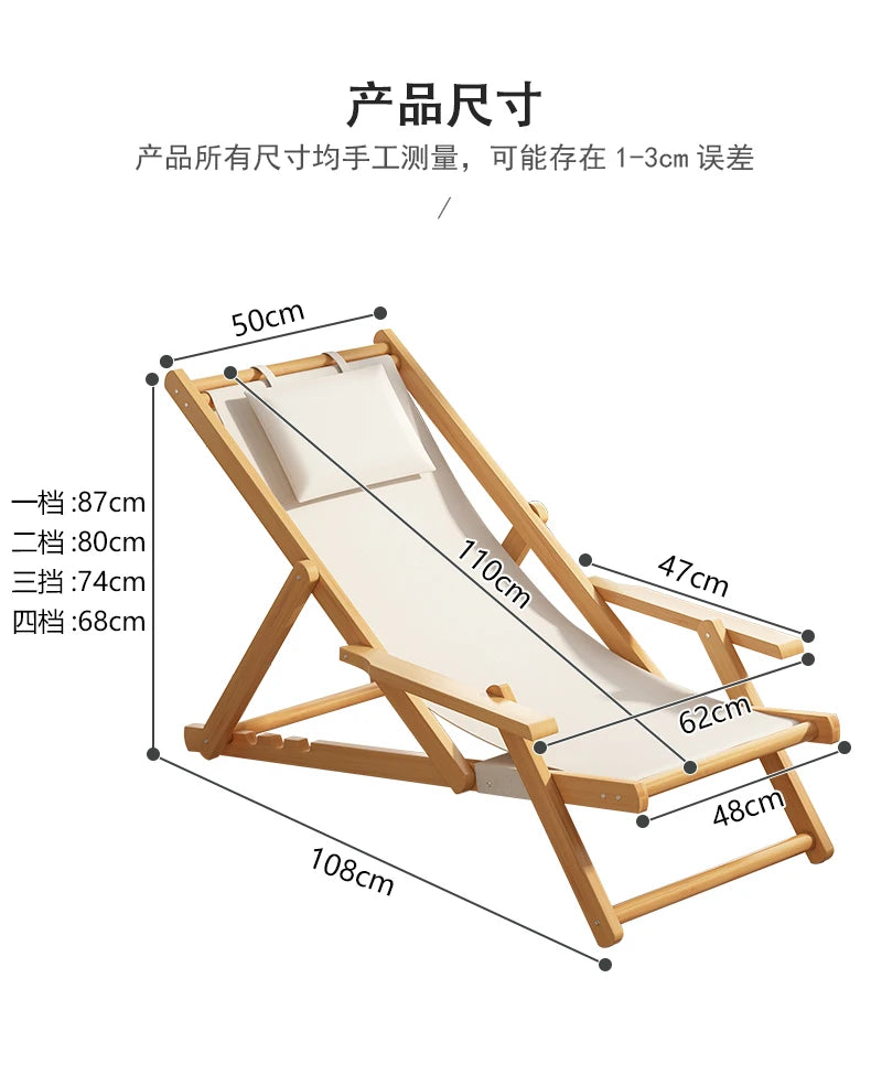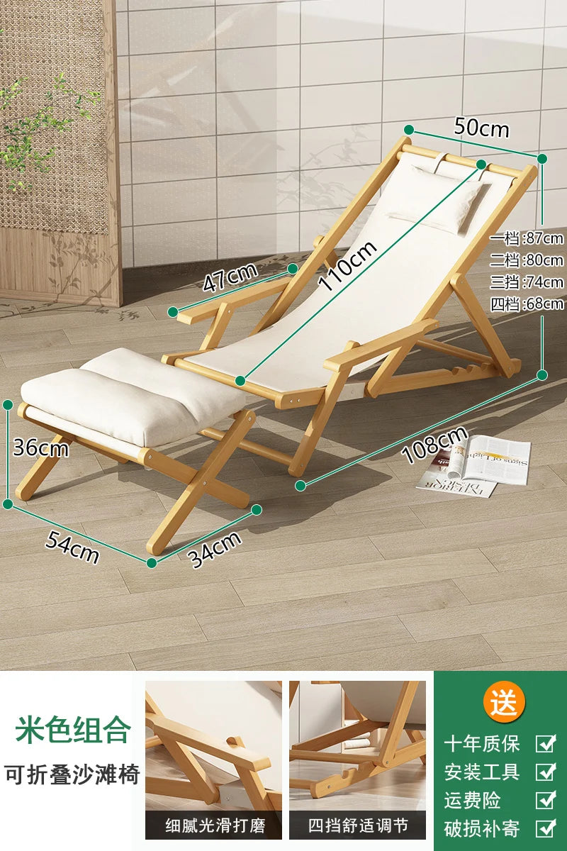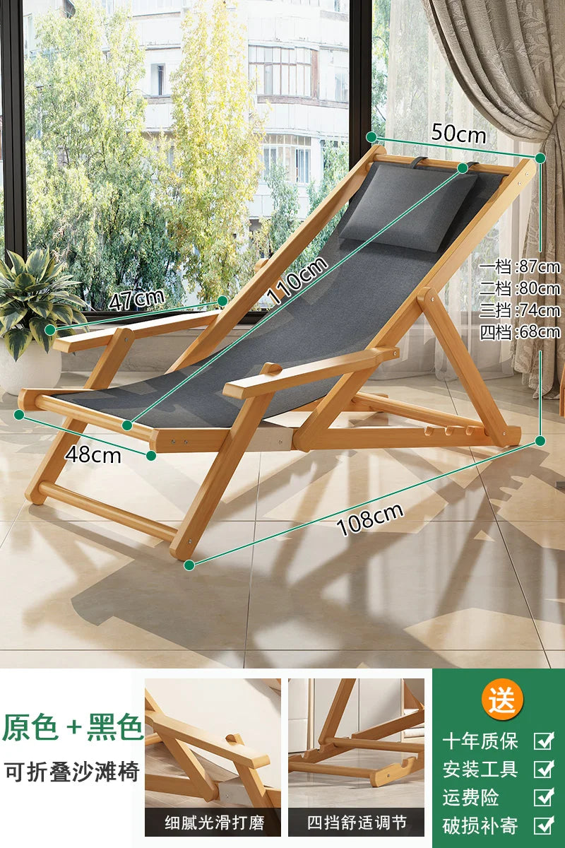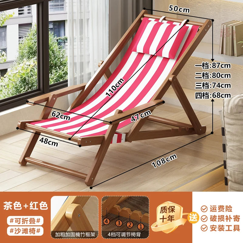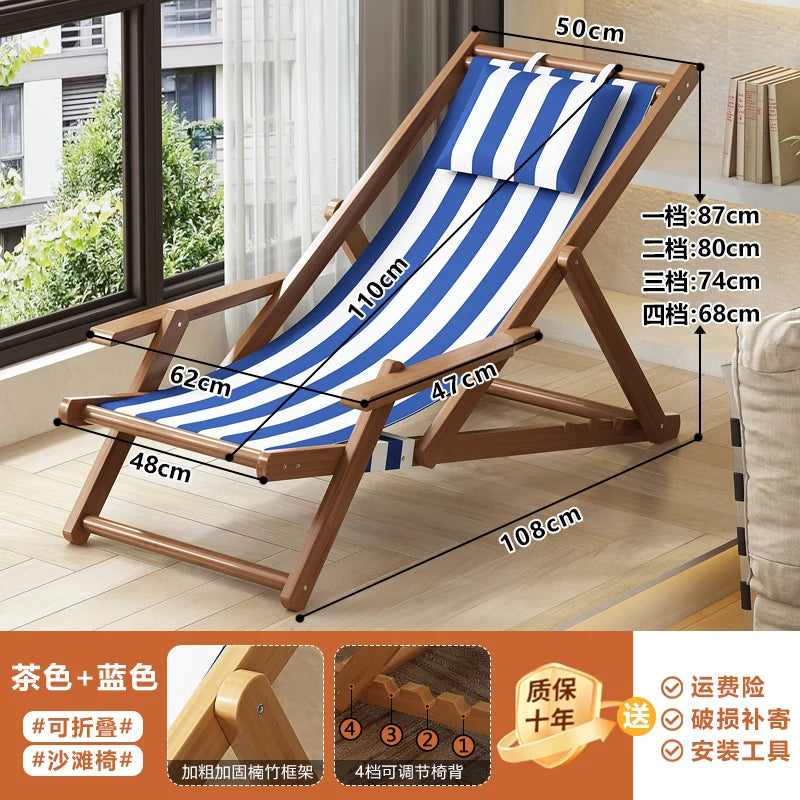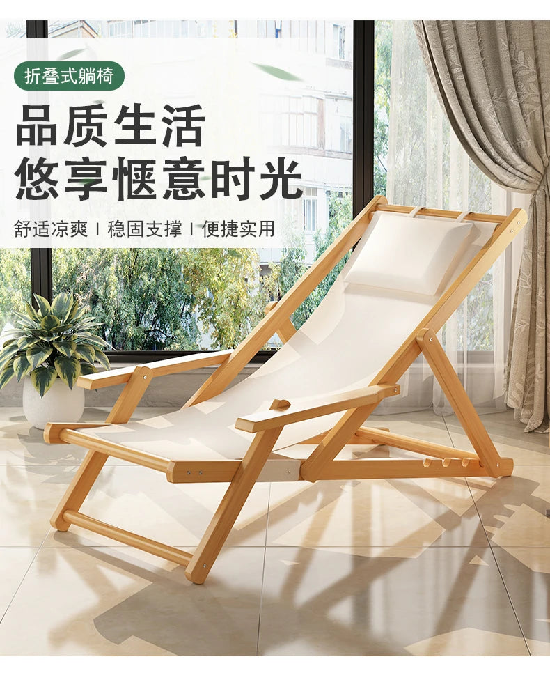 Folding Recliner Beach Chair Adjustable Sunlounger for Balcony & Picnic
