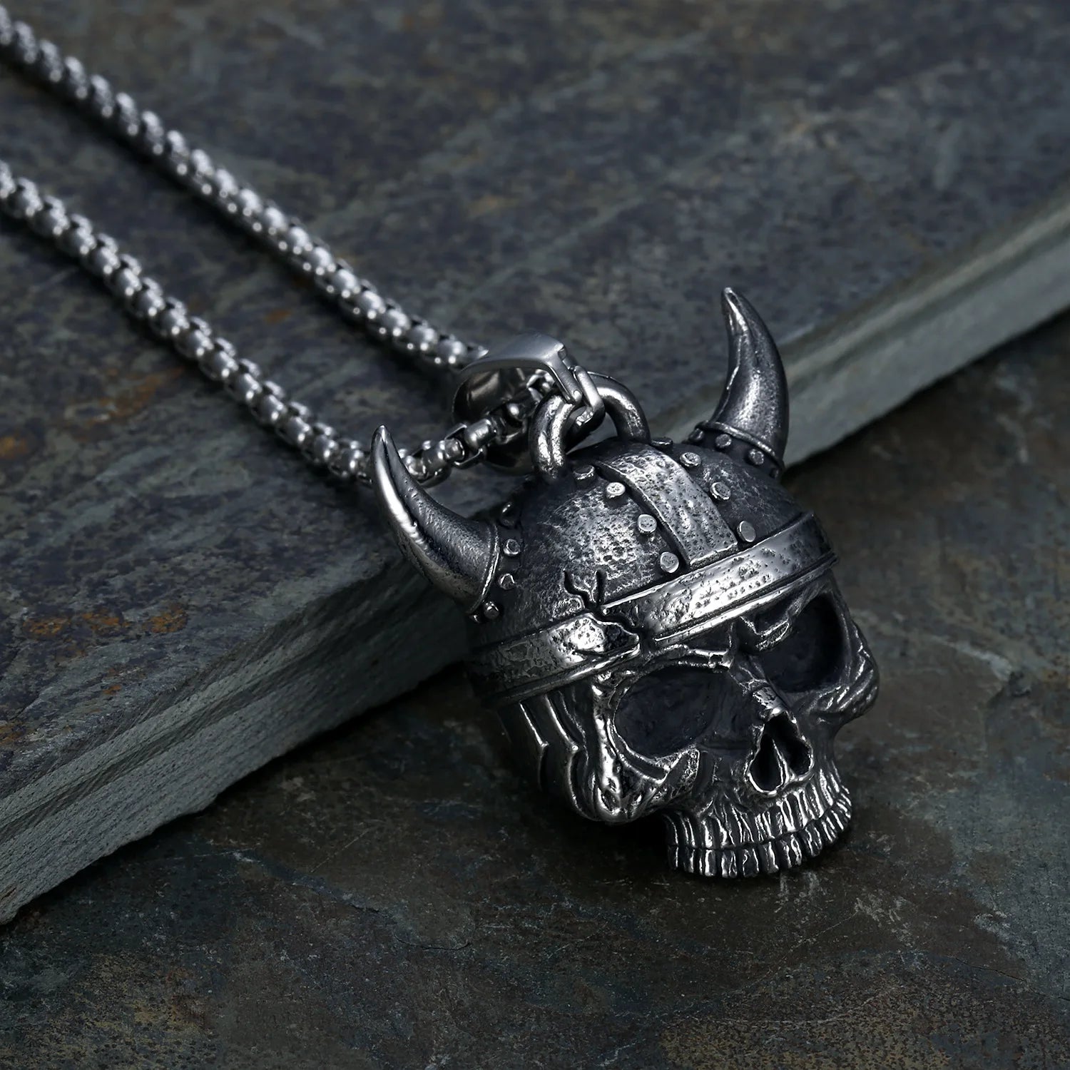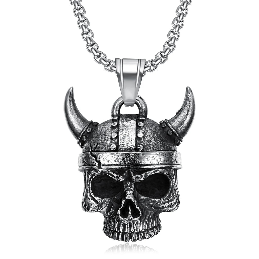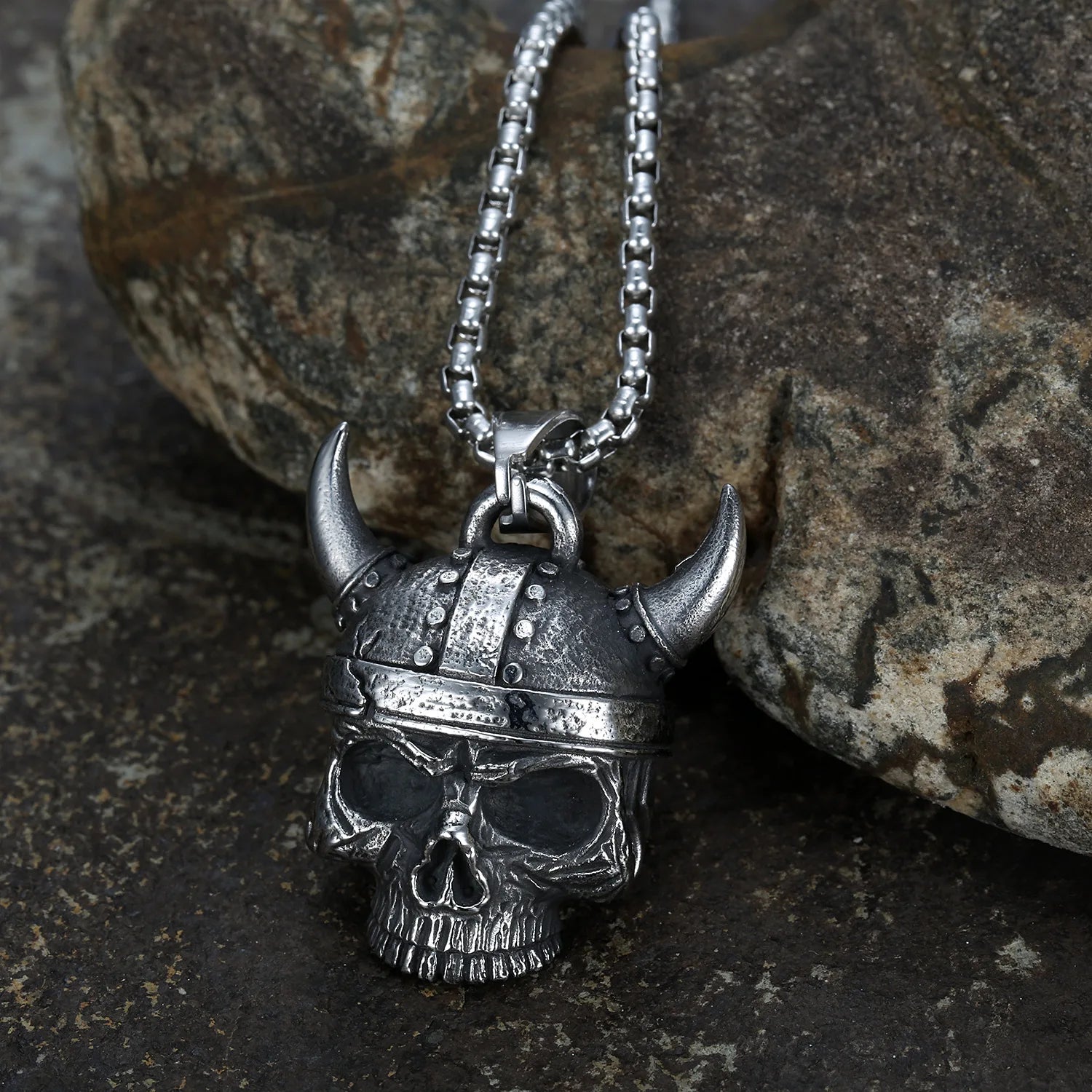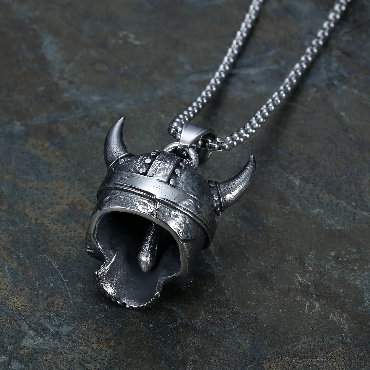 Gothic Ram Skull Pendant Necklace: Demon Bell, Biker Amulet, Men's Exorcist Jewelry