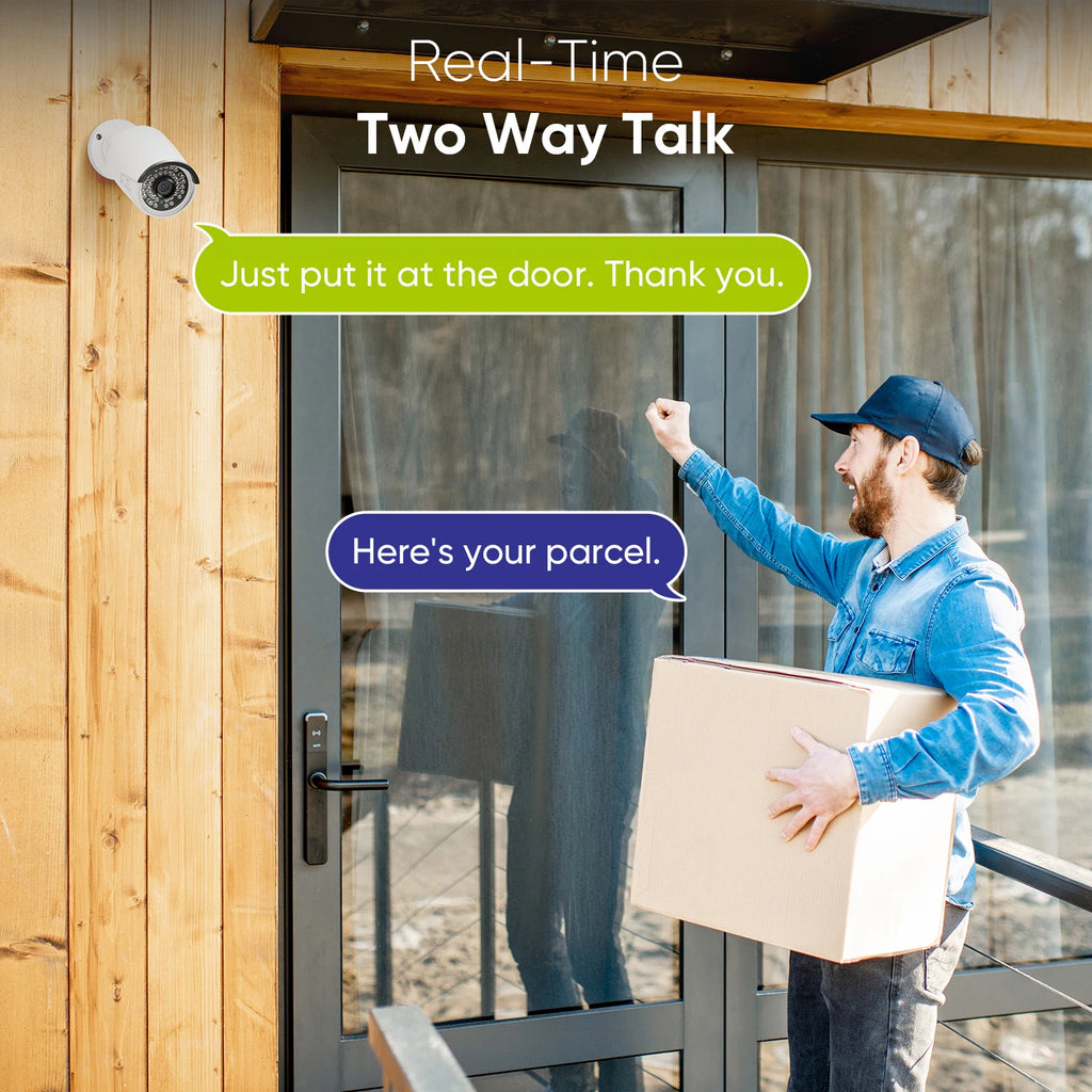 - Two-way Audio: Communicate directly via the built-in microphone and speaker using the mobile app.