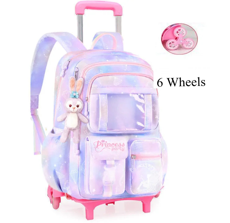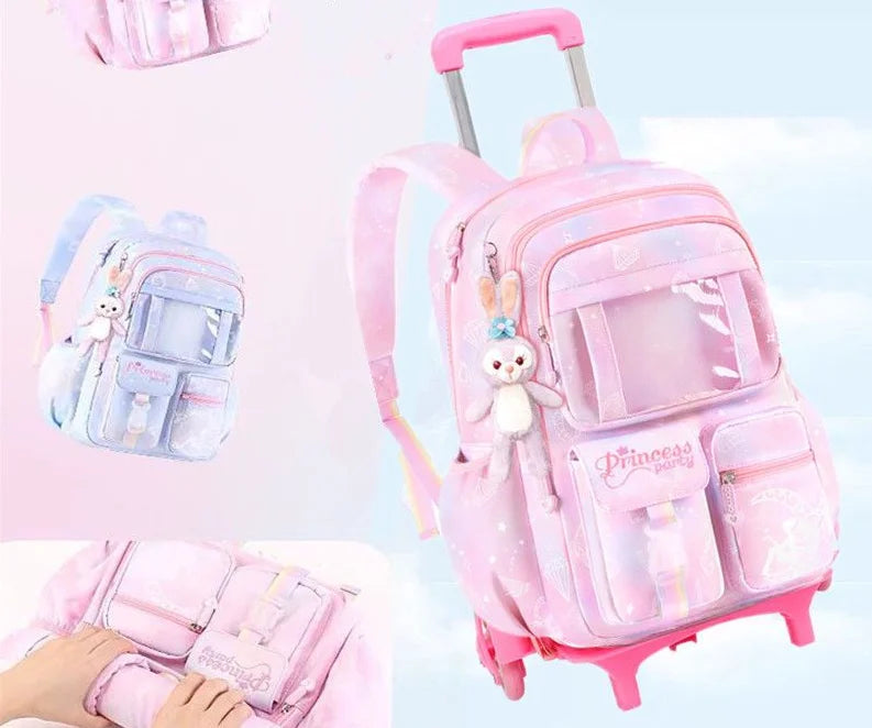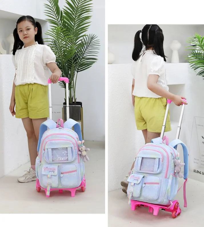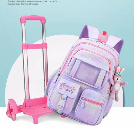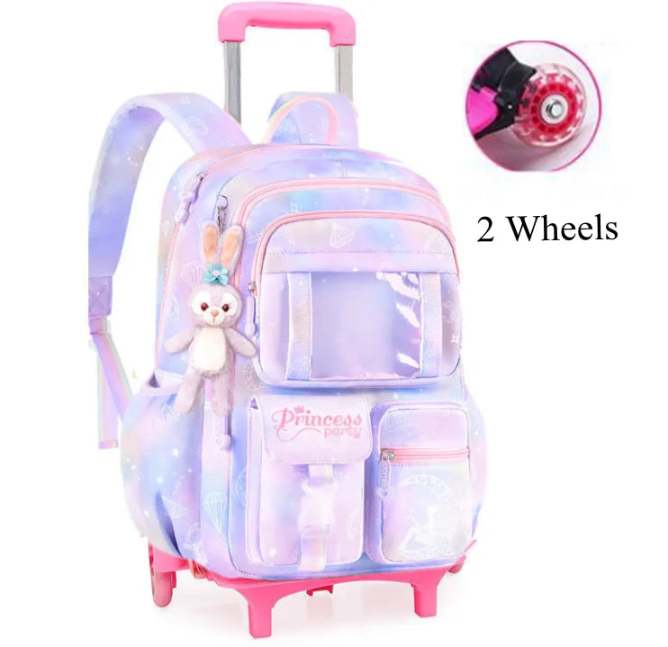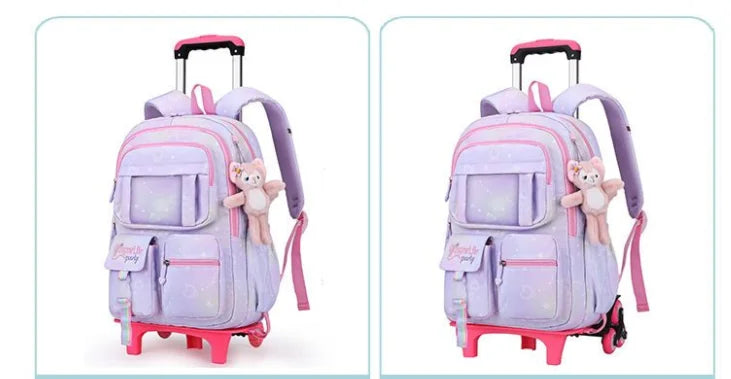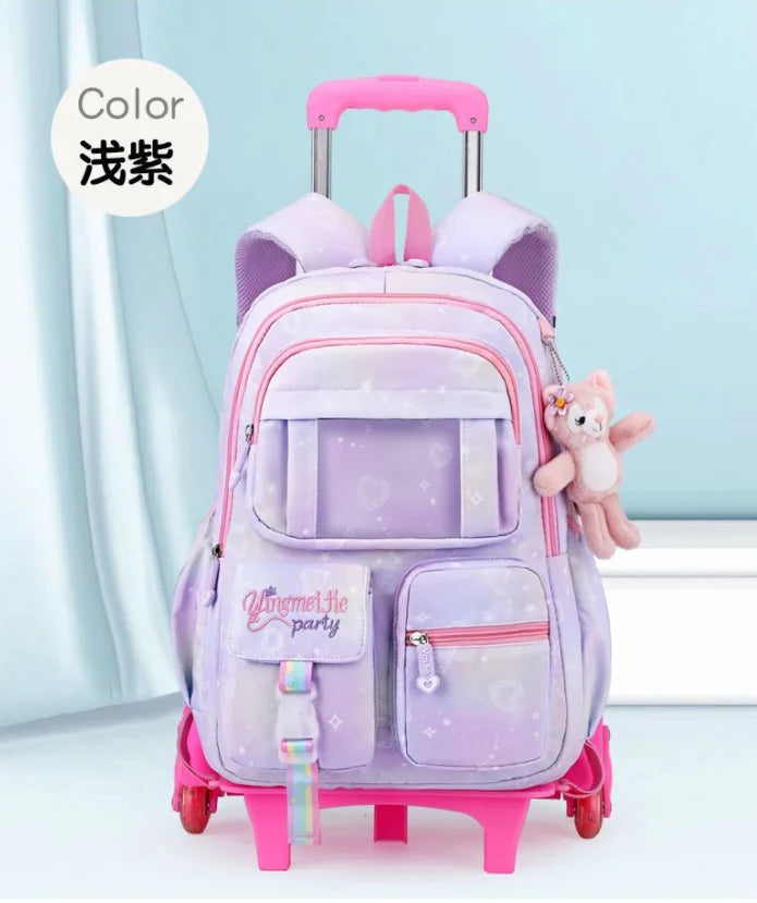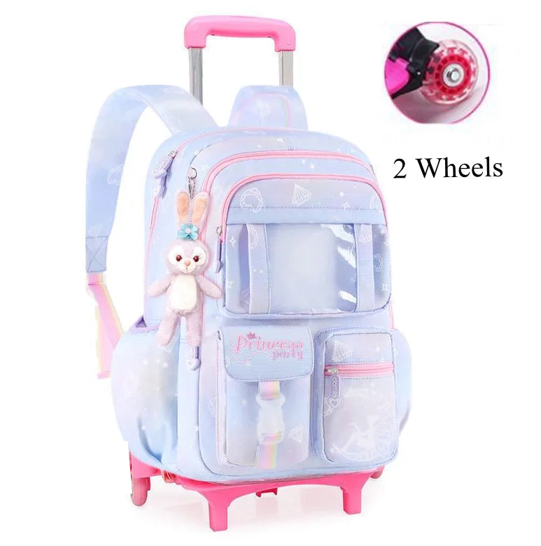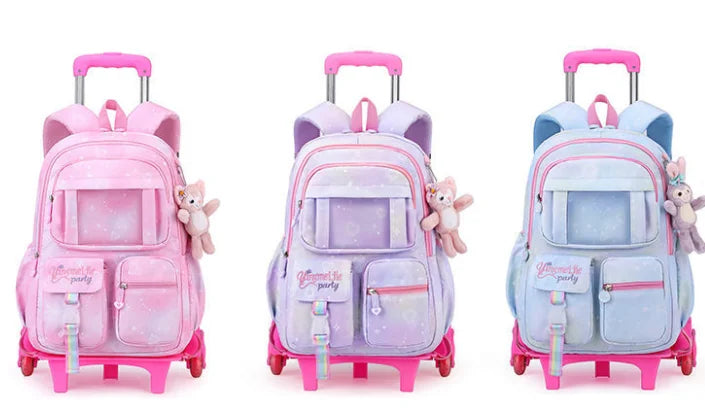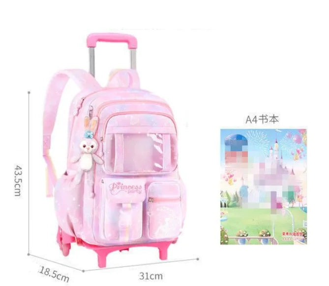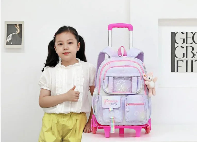 Girls' Rolling School Backpack with Wheels - Kids' Wheeled Trolley Bag